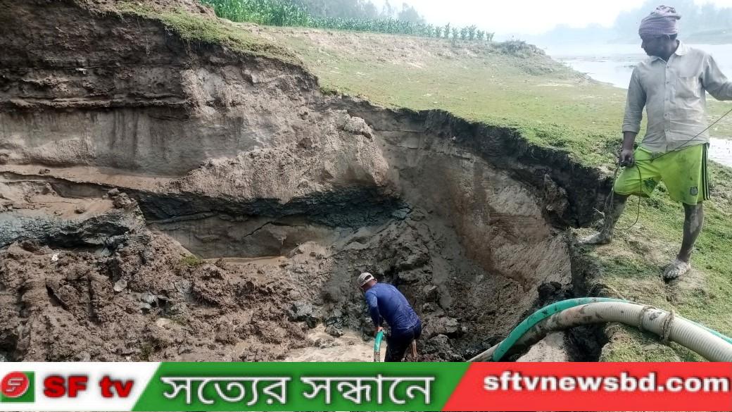 স্থানীয় সাবেক ইউপি সদস্য আয়েদ আলী, নবির উদ্দিন পরামানিক, নুরুল ইসলাম পরামানিক, আনোয়ারা বিবি, হারুন অর রশিদ হিরা সহ এলাকার জনপ্রতিনিধিদের অভিযোগ অবৈধভাবে মাটি উত্তোলনে বন্ধে মানববন্ধন সহ কর্তৃপক্ষের কাছে বারবার লিখিত অভিযোগ দিলেও প্রশাসনের নীরব ভূমিকায় জনমনে নানা প্রশ্ন দেখা দিয়েছে। সরেজমিনে দেখা যায়, খুদিয়াডাঙ্গা শ্মশানঘাটি স্লূইচগেট সংলগ এলাকা থেকে স্কেভেটর (ভেকু) দিয়ে অবৈধভাবে মাটি কাটছে বাবু নামে এক মাটির ব্যবসায়ী। এছাড়াও বায়বুল্লা এলাকায় নদীর বেড়িবাঁধ সংলগ্ন পাহাড়ি কেটে স্থানীয় সংসদ সদস্যের নাম ভাঙ্গিয়ে অবৈধভাবে মাটি ও বালি উত্তোলন করছে প্রভাবশালী অবৈধ মাটি ব্যবসায়ী আরিফুল ইসলাম। এতে নষ্ট হচ্ছে ফসলি জমি এবং হুমকির মুখে পড়ছে গ্রাম রক্ষার বেড়িবাঁধ, এতে চরম হতাশায় দিন কাটাচ্ছেন নদীপাড়ের হাজারো মানুষ। কেউ প্রতিবাদ করলেই মামলা হামলা ও ভয় ভীতি প্রদর্শনের অভিযোগ রয়েছে। এ যেন দেখার কেউ নেই। এ ব্যাপারে অবৈধ মাটি ব্যবসায়ী আরিফুল ইসলামের সাথে যোগাযোগ করা হলে তিনি জানান, ট্রাক মার্কার ভোট করেছি অনেক টাকা খরচ করেছি এলাকায় সভা সমাবেশ যা কিছু হয় সবই আমাকে করতে হয়। আমরা যদি একটু ব্যবসা করে না খায় তাহলে কিভাবে চলবো। তবে সচেতন মহলের দাবি দ্রুত অবৈধ মাটির উওলন বন্ধ করে কৃষি জমি ও স্থানীয়দের বসতভিটা রক্ষায় যথাযথ পদক্ষেপ নেবে প্রশাসন এটাই প্রত্যাশা করেন তারা। অপরদিকে অবৈধ মাটি উত্তোলনকারীদের বিরুদ্ধে যথাযথ ব্যবস্থা গ্রহণের কথা জানিয়েছেন উপজেলা সহকারী কমিশনার জাকির মুন্সী।