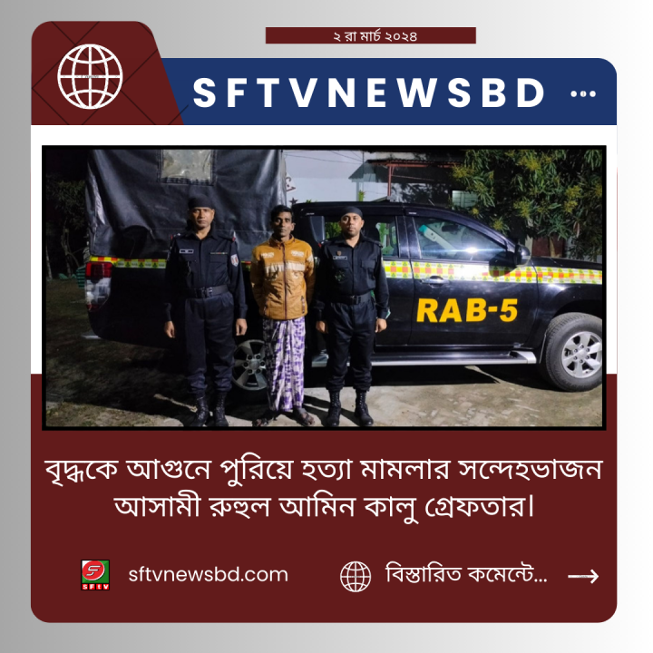 সিপিসি-১, র্যাব-৫, রাজশাহী এবং শিবগঞ্জ থানা পুলিশের অপারেশন দল একটি সমন্বিত অভিযান পরিচালনা করে ০১ মার্চ ২০২৪ ইং তারিখ গোয়েন্দা তথ্যের ভিত্তিতে চাঁপাইনবাবগঞ্জ জেলার শিবগঞ্জ থানাধীন রানিহাটি ইউনিয়নের হঠাৎপাড়া এলাকায় অভিযান পরিচালনা করে বৃদ্ধকে আগুনে পুরিয়ে হত্যাকান্ডের সাথে জড়িত হত্যা মামলার সন্দেহভাজন আসামী ১। রুহুল আমিন কালু (৩৯), পিতা- মোঃ গানু, সাং-বহরম হঠাৎপাড়া, থানা-শিবগঞ্জ, জেলা-চাঁপাইনবাবগঞ্জ কে গ্রেফতার করে।উল্লেখ্য, গত ২৯ ফেব্রæয়ারি ২০২৪ ইং তারিখ বৃদ্ধকে ভ্যান ভাড়া করার নামে বাড়ী থেকে ডেকে নিয়ে আগুনে পুরিয়ে হত্যা করে দুর্বৃত্তরা। ঘটনার পর থেকেই র্যাব এই হত্যাকান্ড সংক্রান্ত বিষয়ে ছায়া তদন্ত শুরু করে। ভিকটিমকে আগুনে পুরিরে হত্যা করে মরদেহ চাঁপাইনবাবগঞ্জ জেলার শিবগঞ্জ থানাধীন ঘোড়াপাখিয়া ইউনিয়নের ০৪নং বাঁধের নিকটে ইটভাটা সংলগ্ন ফসলি জমিতে ফেলে রাখে। এ ঘটনায় নিহতের ছেলে বাদী হয়ে শিবগঞ্জ থানায় গত ০১ মার্চ ২০২৪ ইং তারিখ একটি হত্যা মামলা দায়ের করেন। গোয়েন্দা তথ্যের মাধ্যমে গত ০১/০৩/২০২৪ ইং তারিখ আনুমানিক রাত ২৩:৩০ ঘটিকায় চাঁপাইনবাবগঞ্জ জেলার শিবগঞ্জ থানাধীন রানিহাটি ইউনিয়নের হঠাৎপাড়া এলাকায় অভিযান পরিচালনা করে বৃদ্ধকে আগুনে পুরিয়ে হত্যাকান্ডের সাথে জড়িত মামলার সন্দেহভাজন আসামী ১। রুহুল আমিন কালু (৩৯), পিতা- মোঃ গানু, সাং-বহরম হঠাৎপাড়া, থানা-শিবগঞ্জ, জেলা-চাঁপাইনবাবগঞ্জ’কে ঘটনার ২৪ ঘন্টার মধ্যে গ্রেফতার করে। এই চাঞ্চল্যকর মামলার অন্যান্য আসামিদের গ্রেপ্তার করার জন্য র্যাব এর গোয়েন্দা কার্যক্রম অব্যাহত রয়েছে।উপরোক্ত ঘটনায় গ্রেফতারকৃত আসামীকে চাঁপাইনবাবগঞ্জ জেলার শিবগঞ্জ থানায় হস্তান্তর করা হয়েছে।