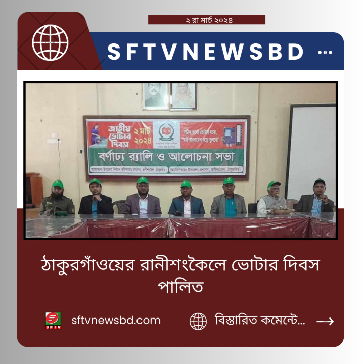 ‘সঠিক তথ্যে ভোটার হবো,স্মার্ট বাংলাদেশ গড়ে তুলবো’এই প্রতিপাদ্যকে সামনে রেখে ঠাকুরগাঁওয়ের রানীশংকৈলে জাতীয় ভোটার দিবস পালিত হয়।