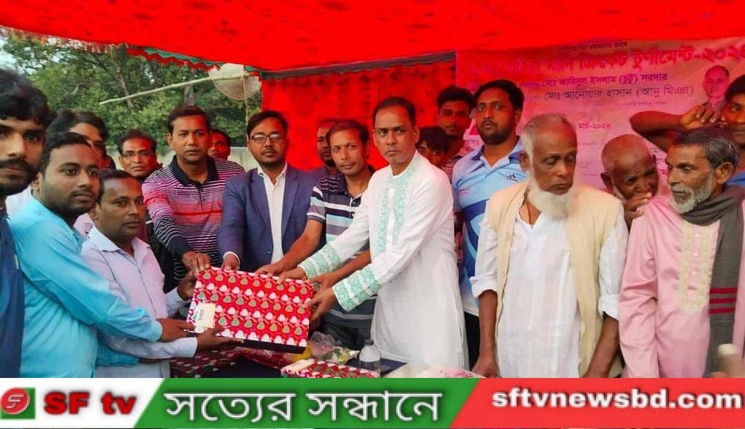 খেলা ধুলায় বাড়ে বল মাদক ছেড়ে খেলতে চল এই প্রতিপাদ্য নিয়ে চককীত্তি ইউনিয়ন ৬ নং ওয়ার্ড আওয়ামীলীগের যুগ্ম সাধারণ সম্পাদক আবুল বাশারের, উদ্যোগে চাঁপাইনবাবগঞ্জের শিবগঞ্জ উপজেলার চককীত্তি ইউনিয়ন লহলামারী সাহেবগ্রাম ঈদগাহ মাঠে বঙ্গবন্ধু ক্রিকেট টুর্নামেন্টের ফাইনাল খেলা সম্পন্ন হয়েছে। (০২ রা মার্চ ২০২৪ ইং) শনিবার বিকেলে ফাইনাল খেলায় আমিনুল ইসলাম (চুটু সর্দার) এর সভাপতিত্বে, প্রধান অতিথি হিসেবে উপস্থিত ছিলেন,৫ নং চককীত্তি ইউনিয়ন পরিষদ চেয়ারম্যান আনোয়ার হাসান আনু মিঞা,এসময় বিশেষ অতিথি হিসেবে উপস্থিত ছিলেন, ডাঃ মোঃ জহির রায়হান,মেডিকেল অফিসার ২৫০ শয্যা বিশিষ্ট জেলা হাসপাতাল চাঁপাইনবাবগঞ্জ, মোঃ সৈবুর রহমান মন্ডল পরিচালক মন্ডল ট্রেডাস চককীত্তি শিবগঞ্জ চাঁপাইনবাবগঞ্জ, চককীত্তি ইউনিয়ন তাঁতীলীগের সাধারণ সম্পাদক নূরুল ইসলাম, চককীত্তি ইউনিয়ন, ৬ নং ওয়ার্ড তাঁতীলীগের সভাপতি কাইয়ুম রেজা সুখন, দুর্বা মানবিক উন্নয়ন সংস্থার পরিচালক এমদাদুল হক,এইচ আর ইঞ্জিনিয়ারিং এর পরিচালক শহিদ হাবিবুল্লাহ আল মাহমুদ ৭ নং ওয়ার্ডের সাবেক সদস্য নুরুল ইসলাম বাবলু, প্রমূখ সহ বিভিন্ন স্থানীয় সাধারণ জনগণ উপস্থিত ছিলেন,এসময় বক্তারা বলেন, লহলামারী সাহেবগ্রামে খেলার জন্য সরকারি কোন মাঠ না থাকায় এই এলাকার মানুষ ঠিক মত খেলাধুলা করতে পারছেন না, এলাকা বাসীর প্রানের দাবি লহলামারী সাহেবগ্রামে একটি খেলার জন্য সরকারি মাঠ চাই।চেয়ারম্যান আনোয়ার হাসান আনু মিঞা বলেন, লহলামারী সাহেবগ্রামে খেলার জন্য একটি সরকারি মাঠের দাবি আপনারা জানিয়েছেন, আমি বর্তমান সংসদ সদস্য ডাঃ শামিল উদ্দিন আহমেদ শিমুলের কাছে আপনাদের দাবি তুলে ধরব, এবং আপনাদের একটি মাঠের ব্যবস্থা করে দিবো ইনশাল্লাহ।ফাইনাল খেলায় পাওয়ার ক্রিকেট একাদশ বনাম লহলামারী ক্রিকেট একাদশ অংশ গ্রহণ করেন, নির্ধারিত ১২ ওভারে পাওয়ার ক্রিকেট একাদশ ১০ উইকেটে ৬৩ রান সংগ্রহ করে, ৬৩ রানের লক্ষ্য তাড়া করতে নেমে লহলামারী ক্রিকেট একাদশ ১২ ওভারে ৪৪ রানে অলআউট হয়ে যায়, ফলে ১৯ রানে জয়লাভ করে চ্যাম্পিয়ন হওয়ার গৌরব অর্জন করেন পাওয়ার ক্রিকেট একাদশ,খেলাটি পরিচালনা করেন, দুই জন অভিজ্ঞ রেফারি,কামরুজ্জামান বাবুল,ও নিয়ামত আলী মাষ্টার, ধারাভাষ্যকার হিসেবে উপস্থিত ছিলেন, রানীবাড়ী প্রাথমিক বিদ্যালয়ের সহকারী শিক্ষক কফিল উদ্দিন রুবেল, আমিনুল ইসলাম ও শহিদুল ইসলাম ,খেলা শেষে চ্যাম্পিয়ন দলকে ৯০০০/- ও রানার্স আপ দলকে ৫০০০/- টাকা পুরস্কার হিসেবে তুলে দেন আমন্ত্রিত অতিথিরা।