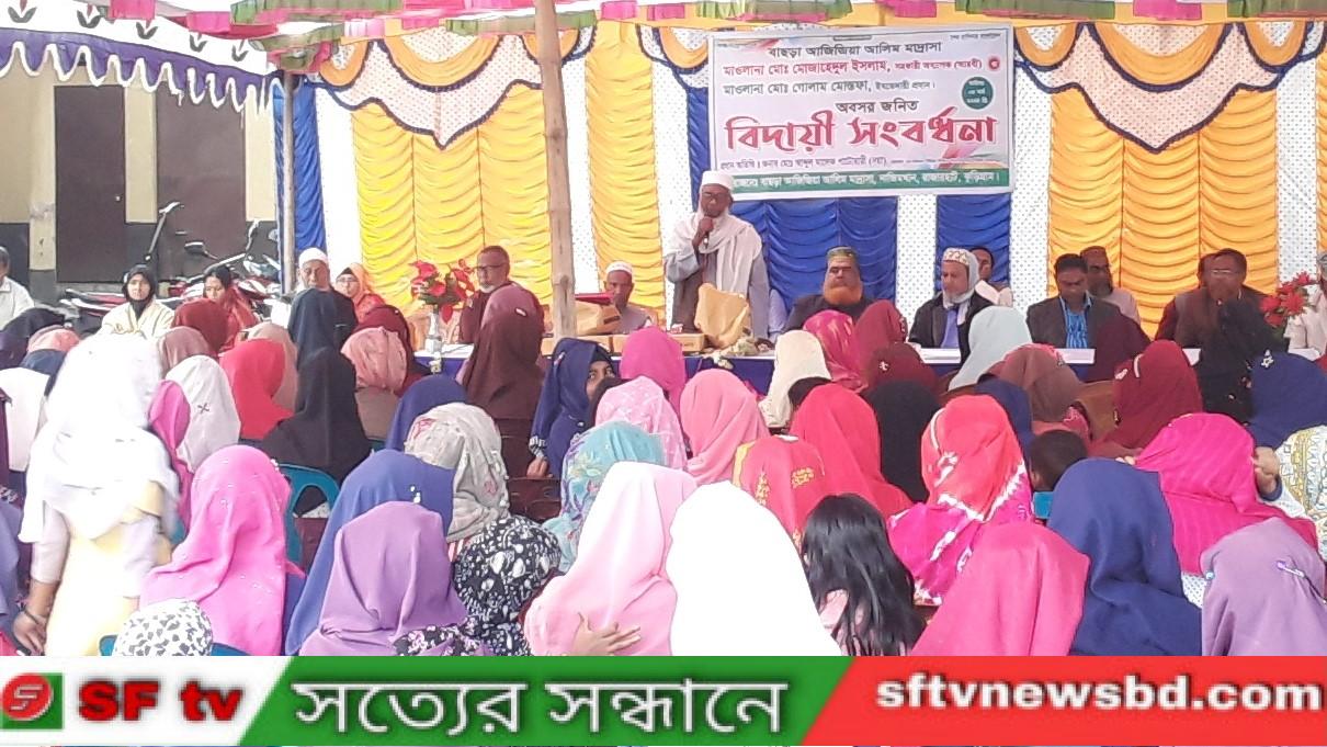 রাজারহাটের নাজিমখান বাছড়া আজিজিয়া আলিম মাদরাসার সহকারী অধ্যাপক (আরবী) মাওলানা মোঃ মোজাহেদুল ইসলাম ও ইবতেদায়ী প্রধান মাওলানা মোঃ গোলাম মোস্তফা অবসর জনিত কারনে আজ ৪ মার্চ সোমবার ,মাদরাসা প্রাঙ্গনে বিদায়ী সংবর্ধনা অনুষ্টিত হয়েছে।বিদায় সংবর্ধনা অনুষ্ঠানে শুরুতে পবিত্র কোরআন থেকে তেলওয়াত ও বিদায়ী শিক্ষকগণকে ফুলের শুভেচ্ছা প্রদান ও বিদায়ী মানপত্র পাঠ করা হয় এবং শিক্ষকদে বিদায়ী ক্রেস্ট প্রদান করা হয়।অনুষ্ঠানে বিশেষ অতিথি হিসেবে গর্ভনিং বডির সদস্য মোঃ সাহেদুল ইসলাম মন্ডল তিনি তার বক্তব্য বলেন, এই দেশটাকে সুখি সমৃদ্ধি করার জন্য আমরা সুশিক্ষায় শিক্ষিত হয়ে নিজেরা তৈরী হবো এবং যে যেখানে আছি সেখান থেকে সততা ও নিষ্ঠার সাথে কাজ করে যাবো। স্মার্ট বাংলাদেশ গড়তে হলে সর্ব প্রথম আমাদের স্মাট শিক্ষার দরকার। ছাত্র-ছাত্রীদেরকে ভালো করে পড়া শোনা করতে হবে। আজকে এ মহান শিক্ষককে বিদায় জানাতে গিয়ে কলিজা বির্দীন হয়ে যাচ্ছে। আমরা এ মহান শিক্ষকদের দীর্ঘায়ু ও সুস্বাস্থ্য কামনা করছি। অনুষ্টানের সভাপতিত্ব করেন অত্র মাদরাসার অধ্যক্ষ মোঃ মোস্তাফিজুর রহমান। অনুষ্ঠান সঞ্চলনায় ছিলেন প্রভাষক মোঃ মজিবুর রহমান ও মোঃ মাহিবর রহমান।