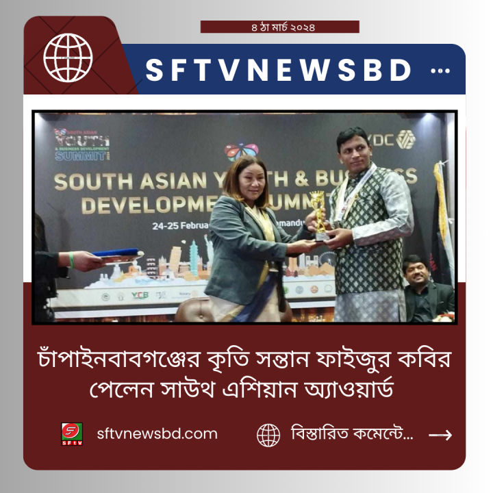 পুরষ্কারের ঝুড়িতে এবার যুক্ত হয়েছে বিদেশের সন্মাননা। গত ২৪ ও ২৫ ফেব্রুয়ারি যুবদের নিয়ে কাজ করার জন্য এশিয়ার মধ্যে সেরাদের নিয়ে একটি অনুষ্ঠান আয়োজন করা হয় নেপালের রাজধানী কাঠমন্ডুতে। ‘সাউথ এশিয়ান ইয়ুথ এক্সসেন্স’ শীর্ষক আয়োজিত বাংলাদেশের সেরা কৃষি উদ্যোক্তা ফাইজুর পেয়েছেন সেরাদের পুরস্কার। দেশটির ডেপুটি স্পিকার এদিন তার হাতে পুরষ্কার তুলে দেন।
