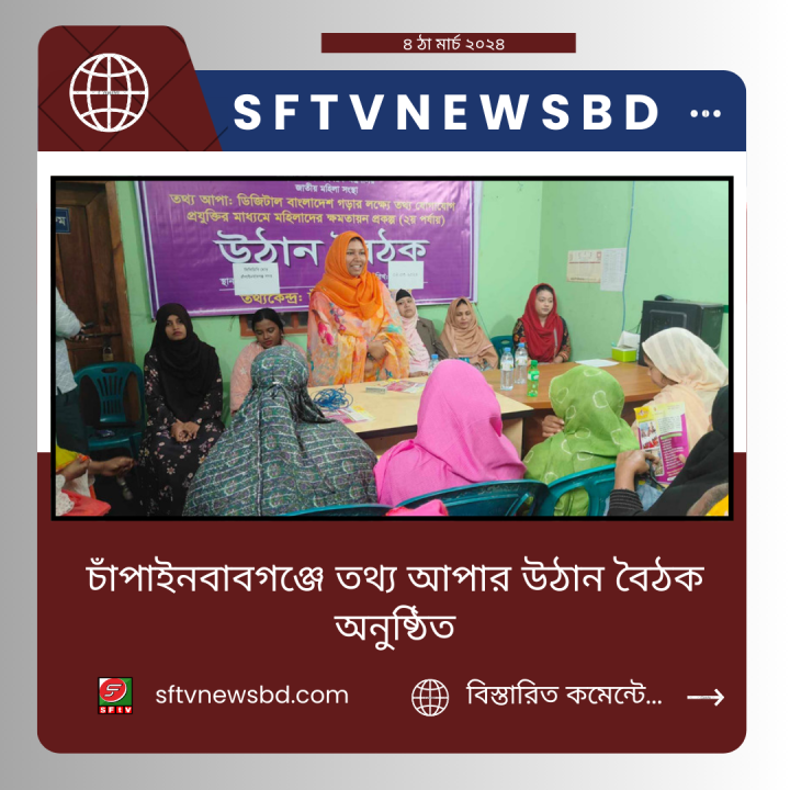 তথ্য কর্মকর্তা মোসাং আছিয়া খাতুন এর সভাপতিত্বে প্রধান অতিথি হিসেবে উপস্থিত ছিলেন জাতীয় মহিলা সংস্থার চেয়ারম্যান এ্যাডঃ ইয়াসমিন সুলতানা রুমা। বিশেষ অতিথি হিসেবে উপস্থিত ছিলেন সদর উপজেলা ভাইস চেয়ারম্যান মোসাঃ নাসরিন জামাল,চাঁপাইনবাবগঞ্জ পৌরসভার প্যানেল মেয়র ৩ মোসাঃ নাজনীন ফাতেমা জিনিয়া। তথ্য সেবা সহকারী কর্মকর্তা মাহমুদা আফরোজ এর সঞ্চালনায় অন্যদের মধ্যে উপস্থিত ছিলেন তথ্য সেবা কর্মকর্তা জোবেদা সিদ্দিকা,সুবিধাভোগী, মোসাঃ লতিফা বেগম,আদরী বেগম,শিউলি বেগম সহ ৫০ জন মহিলা উপস্থিত ছিলেন। তথ্য কর্মকর্তা জানান তারা শিক্ষা, স্বাস্থ্য, আইন,ব্যবসা,কৃষি, জেন্ডার ও ব্যবসা বিষয় সকল ধরনের পরামর্শ প্রদান করেন। প্রধান অতিথি এ্যাডঃইয়াসমিন সুলতানা রুমা বলেন গণপ্রজাতন্ত্রী বাংলাদেশ সরকারের মহিলা ও শিশু বিষয়ক মন্ত্রণালধীন জাতীয় মহিলা সংস্থা কর্তৃক বাস্তবায়নাধীন তথ্যআপা ডিজিটাল ও স্মার্ট বাংলাদেশ গড়ার লক্ষে তথ্য যোগাযোগ প্রযুক্তির মাধ্যমে মহিলাদের ক্ষমতায়ন ২ য় পর্যায় শীর্ষক প্রকল্পটি গ্রামীণ সুবিধাবঞ্চিত নারীর দৈনন্দিন সমস্যা সমাধানে কাজ করছে।