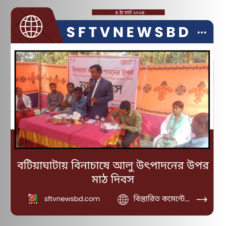 খুলনার বটিয়াঘাটার সুরখালী ইউনিয়নের সুখদাড়া গ্রামে বিনা চাষে আলু উৎপাদন শীর্ষক মাঠ দিবস অনুষ্ঠান গতকাল সোমবার বিকাল তিনটায় অনুষ্ঠিত হয়েছে।