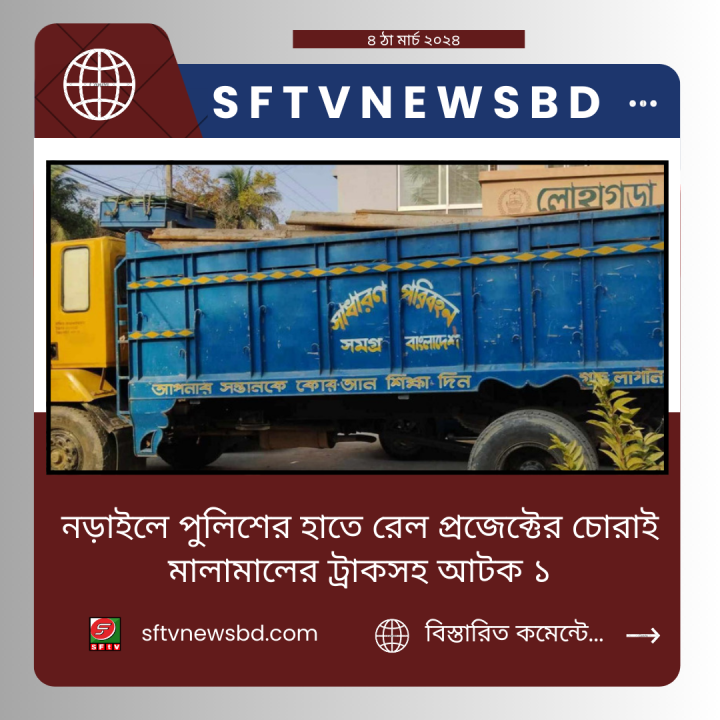 সোমবার (৪ মার্চ) ভোর রাতের দিকে উপজেলার কাশিপুর ইউনিয়নের বসুপটি এলাকা থেকে চোরাই ট্রাক ভর্তি মালামালসহ ওই ব্যক্তিকে আটক করা হয়।আটককৃত উজ্জল শেখ উপজেলার কাশিপুর ইউনিয়নের বসুপটি এলাকার বাবু মিয়ার ছেলে।পুলিশ সূত্রে জানা গেছে, সোমবার ভোর রাতের দিকে উপজেলার কাশিপুর ইউনিয়নের বসুপটি এলাকায় রেল প্রোজেক্টের চোরাইকৃত বিভিন্ন যন্ত্রাংশ একটি ট্রাকে (যশোর-১১-৩১৮৪) বোঝাই হচ্ছিল। এ সময় গোপন সংবাদ পেয়ে লোহাগড়া থানা পুলিশের একটি দল চোরাই মালামাল বোঝাইকৃত ট্রাকটিসহ উজ্জ্বল শেখকে আটক করে থানা হেফাজাতে নিয়ে আসে।লোহাগড়া থানার ভারপ্রাপ্ত কর্মকর্তা (ওসি) কাঞ্চন কুমার রায় বলেন, চুরি হওয়া প্রজেক্ট এর সম্পূর্ণ যন্ত্রাংশ অবৈধভাবে বিক্রি হচ্ছিল। এই মাল অকশন ছাড়া বিক্রয়ের কোনো সুযোগ নেই। এ ঘটনায় মামলা দায়েরের প্রস্তুতি চলছে।