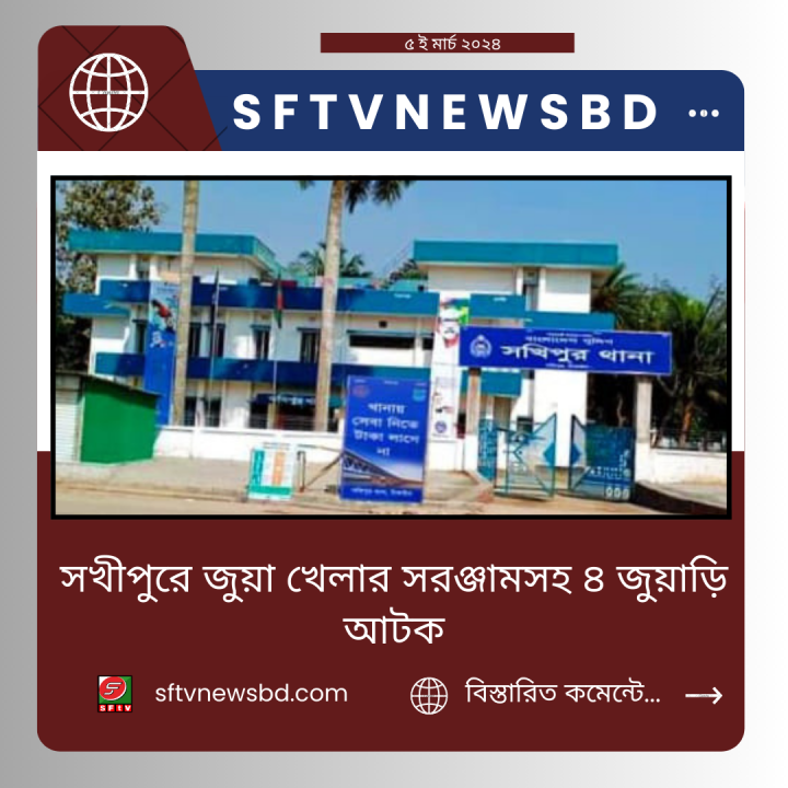 টাঙ্গাইলের সখীপুর উপজেলার কাকড়াজান ইউনিয়নের ইন্দারজানি গ্রামে কলা বাগানের ভিতরে জুয়া খেলারত অবস্থায় ৪জন জুয়াড়িকে আটক করেছে সখীপুর থানা পুলিশ।