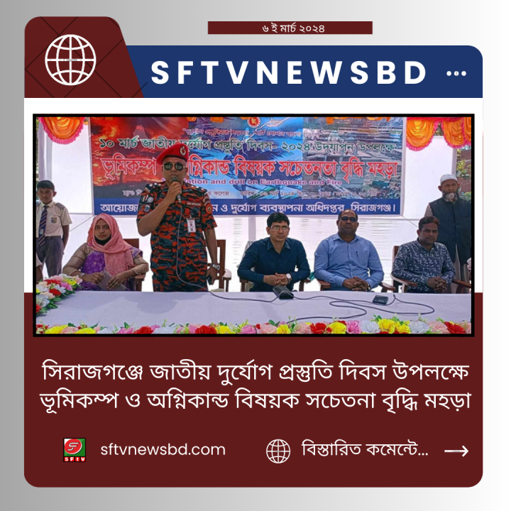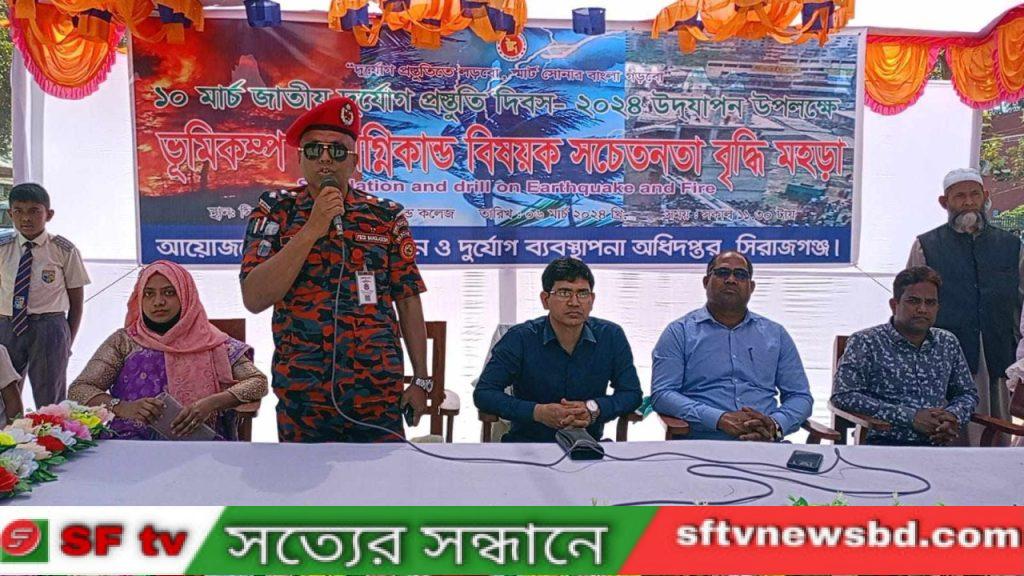 সিরাজগঞ্জে ১০ মার্চ জাতীয় দুর্যোগ প্রস্তুতি দিবস উপলক্ষে ভূমিকম্প ও অগ্নিকান্ড বিষয়ক সচেতনা বৃদ্ধি মহড়া