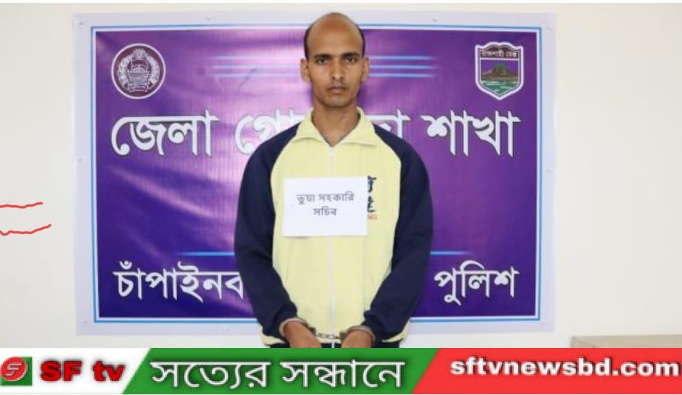 চাঁপাইনবাবগঞ্জ জেলা পুলিশ সুপার ছাইদুল হাসান (বিপিএম-সেবা, পিপিএম-সেবা) সার্বিক নির্দেশনায় জেলা গোয়েন্দা শাখা (ডিবি) অফিসার ইনচার্জ শহিদুল ইসলামের তত্ত্বাবধানে ও এসআই আসগর আলী (পিপিএম- সেবা) নেতৃত্বে মঙ্গলবার (৫ মার্চ) রাতে নাচোল উপজেলার মধ্যবাজার এলাকা হতে ভুয়া সচিবকে গ্রেফতার করেছে ডিবি পুলিশ। আটককৃত আসামি হচ্ছেন নাচোল উপজেলার বেনীপুর গ্রামের তরিকুল ইসলামের ছেলে ইসমাইল হোসেন (২৯)।জেলা পুলিশ সামাজিক যোগাযোগ মাধ্যমে পাঠানো প্রেস বিজ্ঞপ্তিতে জানায় মোবাইলে বিটিসি এল এর “আলাপ” অ্যাপস ব্যবহার করে নিজেকে স্বরাষ্ট্র মন্ত্রণালয়ের সহকারী সচিব পরিচয় দিয়ে জেলা পুলিশ সুপারের সরকারী নম্বারসহ অন্যান্য সরকারি নাম্বারে ফোনে প্রতারণা করে। নিজের পরিচয় গোপন করার জন্য সে বিটিসিএল এর” আলাপ” এ্যাপসের আইপি নাম্বার ব্যবহার করে। এ জেলায় চলমান ট্রোইনি রিক্রুট কনস্টেবল নিয়োগ পরীক্ষায় কনস্টেবল পদে তার ছোট ভাই সহ অন্যান্য প্রার্থীকে পুলিশ কনস্টেবল পদে চাকুরী দেওয়ার জন্য পুলিশ সুপারের সরকারি নাম্বারে বিভিন্ন সময়ে একাধিকবার তদবির করতে থাকে। পরে পুলিশ সুপারের নির্দেশক্রমে তথ্যপ্রযুক্তি ও গোয়েন্দা তথ্যের ভিত্তিতে ভুয়া সচিব পরিচয় দানকারী আসামীকে আটক করতে সক্ষম হয় ডিবি পুলিশ।