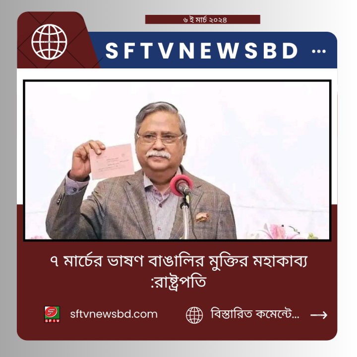 ১৯৭১ সালের এই দিনে বাঙালি জাতির অবিসংবাদিত নেতা, জাতির পিতা বঙ্গবন্ধু শেখ মুজিবুর রহমান তৎকালীন রেসকোর্স ময়দানে বজ্রকণ্ঠে স্বাধীনতার ডাক দিয়েছিলেন।পুরো বাঙালি জাতি সেদিন মন্ত্রমুগ্ধের মতো অবগাহন করেছিলো রাজনীতির মহাকবি বঙ্গবন্ধুর অমর কবিতা। মাত্র ১৮ মিনিটের এই মহাকাব্যে ধ্বনিত হয়েছিল বাঙালি জাতির মুক্তির মহামন্ত্র।আগামীকাল ‘ঐতিহাসিক ৭ মার্চ’ উপলক্ষে আজ দেয়া এক বাণীতে রাষ্ট্রপতি মো.শাহাবুদ্দিন এসব কথা বলেন,তিনি বলেন,”বঙ্গবন্ধুর শাণিত ও প্রদীপ্ত উচ্চারণে  কেঁপে উঠেছিল পাকিস্তানি স্বৈরশাসকের মসনদ। মূলত ৭ মার্চের ভাষণেই নিপীড়িত-নির্যাতিত বাঙালি জাতি খুঁজে  পেয়েছিল শোষণমুক্তির কাক্সিক্ষত পথ। তাই ৭ মার্চের ঐতিহাসিক ভাষণ বাঙালির জন্য পরাধীনতার শৃঙ্খল থেকে মুক্তির মহাকাব্য।৭ মার্চ বাঙালি জাতির মুক্তিসংগ্রাম ও স্বাধীনতার ইতিহাসে একটি অবিস্মরণীয় দিন উল্লেখ করে রাষ্ট্রপতি এ উপলক্ষ্যে স্বাধীনতার মহান স্থপতি সর্বকালের সর্বশ্রেষ্ঠ বাঙালি জাতির পিতা বঙ্গবন্ধু শেখ মুজিবুর রহমানকে গভীর শ্রদ্ধার সাথে স্মরণ করেন।