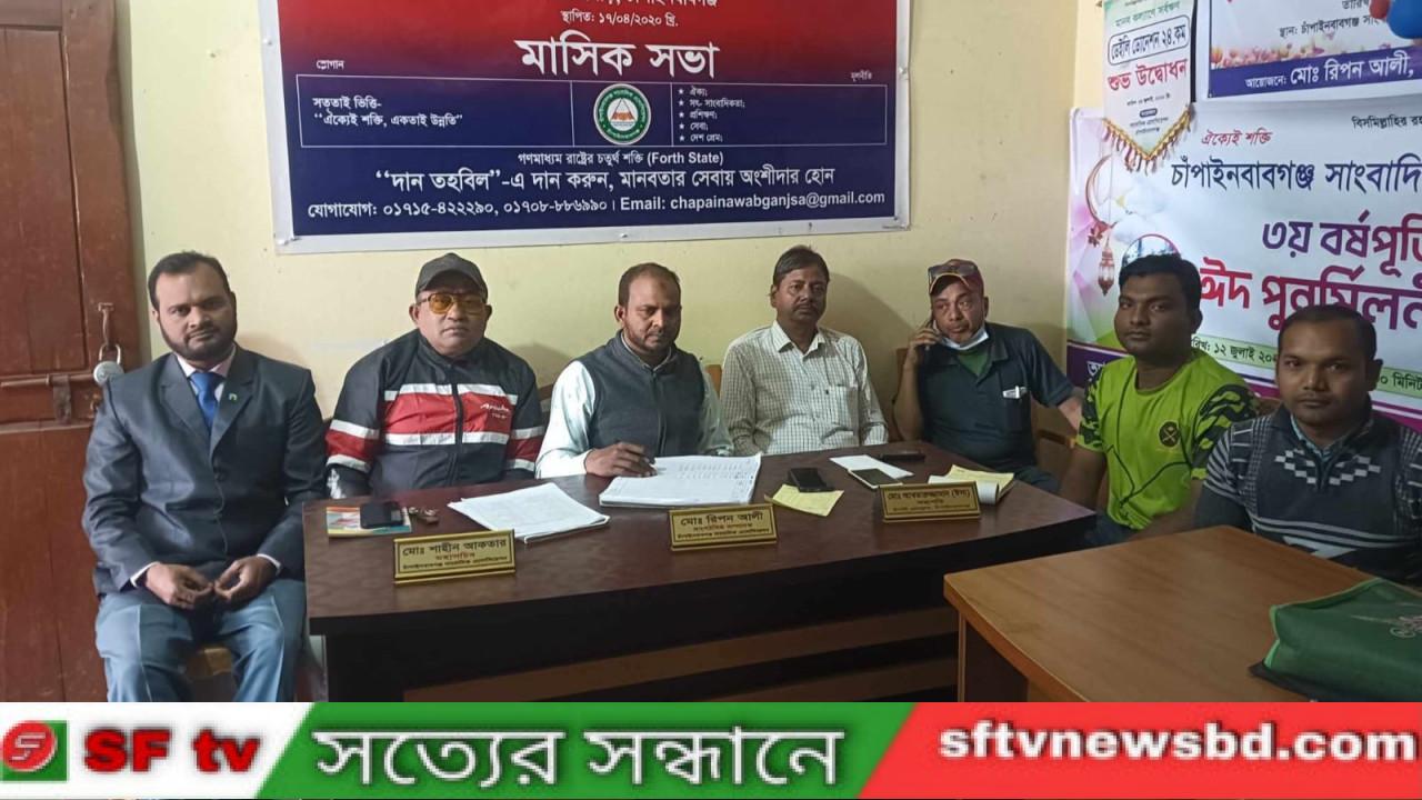 চাঁপাইনবাবগঞ্জ সাংবাদিক এসোসিয়েশনের মাসিক সভা অনুষ্ঠিত হয়েছে।
