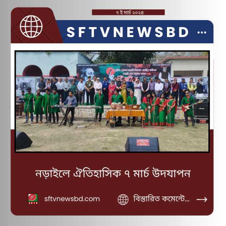 পরে নড়াইলে জাতির পিতা বঙ্গবন্ধু শেখ মুজিবুর রহমানের ঐতিহাসিক ৭ মার্চ পালন উপলক্ষে হাজারো কণ্ঠে ৭ মার্চের ভাষণ এবং জাতীয় সংগীত পরিবেশন করা হয়েছে। নড়াইল ব্যতিক্রমী এই আয়োজন করে।এ সময় স্কুল-কলেজের শিক্ষার্থীরা মনোরম হিউম্যান চেইনের মাধ্যমে বাংলাদেশের মানচিত্র ফুটিয়ে তোলে। মাঠের একপ্রান্তে বিশালাকার বাংলাদেশের পতাকার পাশাপাশি বঙ্গবন্ধুর স্বাধীনতা পূর্ববর্তী ও পরবর্তী বিভিন্ন সময়ের ছবি মাঠের চারপাশে শোভা পাচ্ছিল। এর আগে বঙ্গবন্ধুর প্রতিকৃতিতে পুস্পস্তবক অর্পণ করা হয়।
