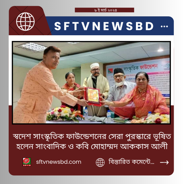 ৯০ দশক থেকে বিভিন্ন সংবাদপত্রে মুক্তিযোদ্ধাদের জীবন চিত্র নিয়ে প্রতিবেদন,গল্প ও কবিতা লেখায় স্বদেশ সাংস্কৃতি ফাউন্ডেশনের সেরা পুরস্কারে ভূষিত হলেন সাংবাদিক ও কবি মোহাম্মদ আককাস আলী।