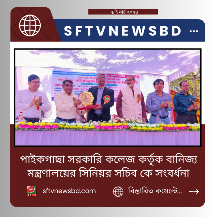 পাইকগাছা সরকারি কলেজ কর্তৃক বানিজ্য মন্ত্রণালয়ের সিনিয়র সচিব পাইকগাছার কৃতি সন্তান তপন কান্তি ঘোষ’কে সংবর্ধনা প্রদান সহ বার্ষিক ক্রীড়া প্রতিযোগিতার পুরস্কার বিতরণ করা হয়েছে।