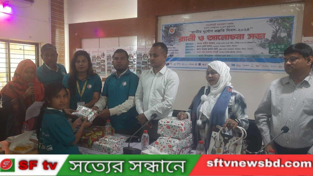 এ প্রতিপাদ্য বিষয়কে সামনে রেখে গণপ্রজাতন্ত্রী বাংলাদেশ সরকার এর দুর্যোগ ব্যবস্থাপনা ও ত্রাণ মন্ত্রণালয় জাতীয় দুর্যোগ প্রস্তুতি দিবস-২৪ র্যালি ও আলোচনা সভা ১০ই মার্চ সকাল১১ টায় উপজেলা পরিষদ মিলনায়তনে অনুষ্ঠিত হয় উপজেলা প্রশাসন কর্তৃক আয়োজিত এবং উপজেলা নির্বাহী অফিসার মোঃ আদনান চৌধুরীর সভাপতিত্বে অনুষ্ঠিত সভায় প্রধান অতিথির অনুপস্থিতিতে বিশেষ অতিথি হিসাবে বক্তব্য রাখেন,উপজেলা মহিলা ভাইস চেয়ারম্যান তাহেরা আখতার মিলি ও উপজেলা সমাজ সেবা অফিসার খোরশেদ আলম। উপজেলা তথ্য আপা অফিসার তাছলিমা খাতুনএর পরিচালনায় অনুষ্ঠানের সূচনা লগ্ন কোরআন তেলাওয়াত এবং ত্রিপিটক পাটের মধ্য দিয়ে স্বাগত বক্তব্য রাখেন,উপজেলা।প্রকল্প বাস্তবায়ন অফিসার মোঃ হাবিবুর রহমান। এ বিষয়ে বক্তব্য রাখেন,টেকনাফ উপজেলা ফায়ার সার্ভিস স্টেশন অফিসার মুকুল,টেকনাফ উপজেলা সিপিপি আরও মোঃ হানিফ এনজিও সংস্থা অ্যাকশন ফর সোশ্যাল ডেভেলপমেন্ট(এএসডি) এর প্রজেক্ট ম্যানেজার রোকন উদদীন আহমেদ, নারী সংগঠক কুলসুমা বেগম ও বাংলাদেশ রেড ক্রিসেন্ট সোসাইটি পিপিপি এর ফিল্ড অফিসার মোহাম্মদ বিশারত আলী,সভাপতি সমাপনী বক্তব্যে দুর্যোগ সংক্রান্ত বিষয়ে বিভিন্ন তথ্য উপাত্ত বিষয়ে তাৎপর্যপূর্ণ বক্তব্য রেখে বলেন, প্রাকৃতিক দুর্যোগ ও মানব সৃষ্ট দুর্যোগ এবং দুটি দুর্যোগ কক্সবাজার জেলার উখিয়া -টেকনাফ সীমান্ত উপজেলা দুর্যোগ প্রবণ এলাকা। দুর্যোগ থেকে বাঁচতে প্রাথমিকভাবে প্রস্তুতি সম্পর্কে জানতে হবে। অনুষ্ঠান শেষে দুর্যোগ সংক্রান্ত বিষয়ে চিত্রাংকন প্রতিযোগীদের মধ্যে পরিষ্কার বিতরণ করা হয়। এর আগে উপজেলা পরিষদ চত্বরে উপজেলা নির্বাহী অফিসারের নেতৃত্বে একটি র্যালি বের করা হয়। উপস্থিত ছিলেন,উপজেলা সরকারি বিভিন্ন দপ্তরের অফিসার,এনজিও সংস্থা সিন্ডিক্যাপ ইন্টারন্যাশনাল,সিপিপসিএসডিও,উন্নয়ন,রেড ক্রিসেন্ট সহ শিক্ষার্থী ও সুশীল সমাজের নারী ও পুরুষ।