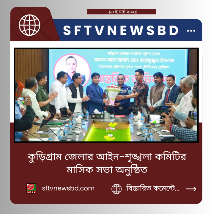 আজ ১০ মার্চ ২০২৪ সকাল ১১.০০ ঘটিকায় কুড়িগ্রাম জেলা প্রশাসকের কার্যালয়ে আইনশৃঙ্খলা কমিটির সভায় পুলিশ ও প্রশাসনকে ধন্যবাদ জানান সম্মানিত সদস্যরা।