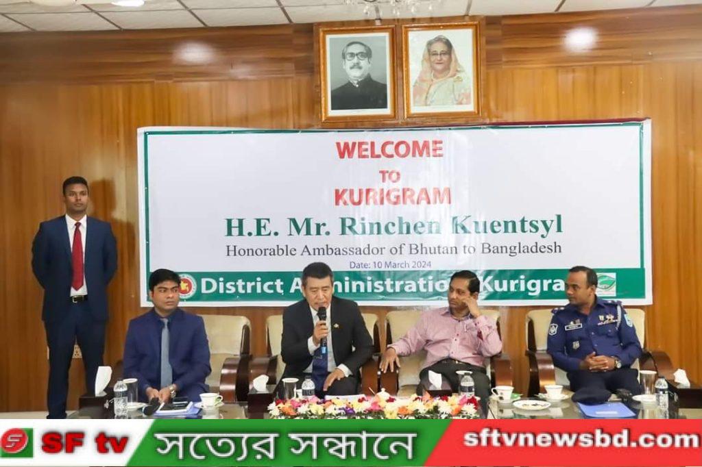 বাংলাদেশে নিযুক্ত ভুটানের মান্যবর রাষ্ট্রদূত H. E. Mr. Rinchen Kuentsyl এবং বাংলাদেশ অর্থনৈতিক কর্তৃপক্ষ (বেজা) ও ভুটানের উচ্চ পর্যায়ের একটি প্রতিনিধি দল। দুই দিনের এই সফরে জেলা প্রশাসনের সাথে কুড়িগ্রাম জেলা পুলিশ প্রটোকল, নিরাপত্তা, অভ্যর্থনা নিশ্চিত করেন।কুড়িগ্রামে কর্মসংস্থান, উন্নয়ন ও শিল্পায়নের ক্ষেত্রে অনাগত সময়ে নানাবিধ সম্ভাবনার দ্বার উন্মোচনের ক্ষেত্রে মাননীয় প্রধানমন্ত্রীর নির্দেশনায় এটি একটি গুরুত্বপূর্ন সফর হিসাবে বিবেচিত হয়।উক্ত সফরে সফর সঙ্গী হিসেবে আরও ছিলেন Mr. Chhime Tshering (DG, Dept. of Industry, Royal Government of Bhutan), Ms. Kinley Yangzom (Chief Trade Officer, Export Promotion Division, Dept. of Trade, Royal Government of Bhutan), ড. শেখ মোহাম্মদ জোবায়েদ হোসেন (মহাব্যবস্থাপক, যুগ্মসচিব, অর্থ ও বাজেট, বেজা), আবু হেনা মোঃ মুস্তাফা কামাল (ব্যবস্থাপক, উপসচিব, বিনিয়োগ উন্নয়ন ও মনিটরিং-১, বেজা, মোহাম্মদ ফিজনূর রহমান (পরিচালক প্রধানমন্ত্রীর কার্যালয়), মোঃ মনোয়ার মোকাররম (পরিচালক, দক্ষিণ এশিয়া, পররাষ্ট্র মন্ত্রণালয়), মোঃ শিহাব উদ্দিন (সহকারী ব্যবস্থাপক, এমআইএস ও গবেষণা, বেজা) সফরসঙ্গী হবেন মর্মে প্রোগ্রামসূচী হতে জানা যায়।