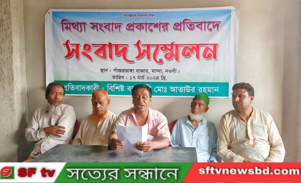 নওগাঁর মান্দায় মিথ্যা অভিযোগ ও অপপ্রচারের প্রতিবাদ জানিয়ে সংবাদ সম্মেলন করেছেন আতাউর রহমান নামে এক ব্যবসায়ী।