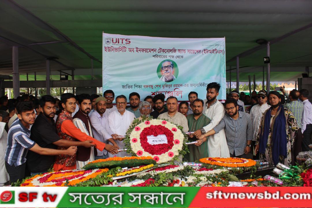 বাংলাদেশের সর্ব প্রথম তথ্য ও যোগাযোগ প্রযুক্তি নির্ভর বিশ্ববিদ্যালয়ে ইউনিভার্সিটি অব ইনফরমেশন টেকনোলজি অ্যান্ড সায়েন্সেস (ইউআইটিএস)-এ জাতির পিতা বঙ্গবন্ধু শেখ মুজিবুর রহমান-এর ১০৪ তম জন্মবার্ষিকী ও জাতীয় শিশু দিবস ২০২৪ উদযাপন করা হয়। আজ ১৭ মার্চ ২০২৪ রোজ রবিবার বেলা সকাল ১১:০০ টায় বিশ্ববিদ্যালয়ের মাননীয় উপাচার্য অধ্যাপক ড. মোঃ আবু হাসান ভূঁইয়া ঢাকা ধানমন্ডির ৩২ নম্বরে বঙ্গবন্ধুর প্রতিকৃতিতে পুষ্পস্তবক অর্পণ করে জাতির পিতা বঙ্গবন্ধু শেখ মুজিবুর রহমান-এর প্রতি গভীর শ্রদ্ধা নিবেদন করেন। এ সময় বিশ্ববিদ্যালয়ের, মাননীয় কোষাধ্যক্ষ অধ্যাপক ড. সিরাজ উদ্দীন আহমেদ, রেজিস্ট্রার জনাব মোহাম্মদ কামরুল হাসান, প্রক্টর ড. মোঃ ইয়াছিন আলী, ছাত্রকল্যাণ উপদেষ্টা জনাব মো. তারিকুল ইসলাম, ইন্টারন্যাশনাল ডেস্কের অতিরিক্ত পরিচালক জনাব শুভ দাস, জনসংযোগ কর্মকর্তা জনাব মোঃ সাইফুল ইসলাম-সহ শিক্ষক-শিক্ষার্থী ও কর্মকর্তা-কর্মচারীবৃন্দ উপস্থিত ছিলেন। এছাড়া সূর্যোদয়ের সাথে সাথে বিশ্ববিদ্যালয়ের ভাটারাস্থ নিজস্ব ক্যাম্পাসে জাতীয় পতাকা উত্তোলন, আলোচনা, দোয়া ও ইফতারসহ বিভিন্ন কর্মসূচি পালন করা হয়। আলোচনায় শিক্ষার্থীদের মধ্য থেকে অংশগ্রহণ করেন ইউআইটিএস- এর ইংরেজি বিভাগের শিক্ষার্থী সাইফুল ইসলাম সিয়াম ,সিএসই বিভাগের মোঃ আসিফ দেওয়ান এবং আইন বিভাগের শিক্ষার্থী মোঃ সাজ্জাদ হোসেন ।