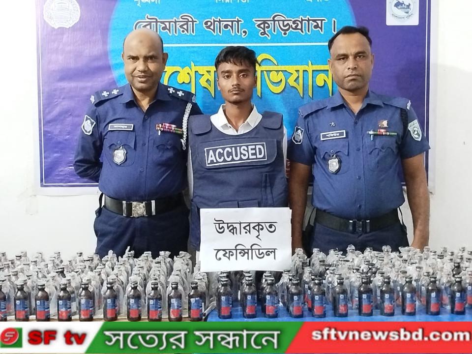 কুড়িগ্রাম জেলার রৌমারী থানা পুলিশের একটি চৌকস টিম অদ্য ২৩ মার্চ ২০২৪ দুপুর আনুমানিক ১৩.০০ ঘটিকার সময় গোপন সংবাদের ভিত্তিতে ছদ্মবেশে দিনমজুর সেজে অভিযান পরিচালনা করে রৌমারী উপজেলা পরিষদের সামনে সিএনজি স্ট্যান্ড থেকে কিশোরগঞ্জ জেলার কাটিয়াদি থানাধীন জেলার সুলতানপুর এলাকার কুখ্যাত মাদক কারবারি মোঃ শাহিন মিয়া (২০)’কে ২৬২ বোতল ফেন্সিডিলসহ হাতেনাতে গ্রেফতার করে।