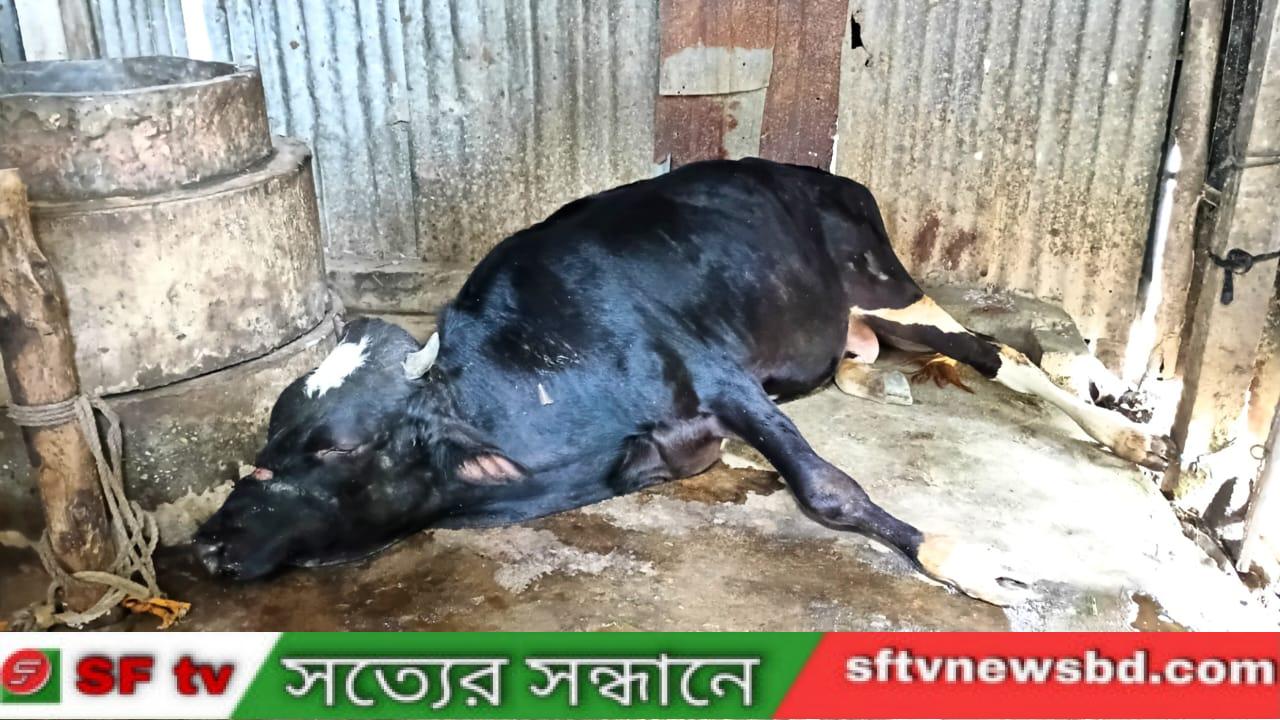 গত রবিবার সরজমিনে গিয়ে দেখা যায়, গোয়াল ঘরে পড়ে আছে বিশাল একটি ষাঁড় গরু। যার বাজার মূল্য প্রায় এক লক্ষ ৭০ হাজার টাকা। মালিক সূত্রে জানা গেছে, ১০ থেকে ১৫ দিন আগে গরুটির মুখ দিয়ে লালা ঝরতে থাকে, এরপর স্থানীয় চিকিৎসক সজলকে খবর দিলে, গরুটি দেখে চিকিৎসা দিতে থাকেন। প্রথমে এফ এল কেয়ার ও বারসল ঔষধ খাওয়াতে বলেন। কয়েকদিন খাওয়াতে থাকলে কোন উন্নতি না হওয়ায়। তাকে আবারো ডেকে নিয়ে আসেন গরুর মালিক সালেখা বেগম সেদিন তাকে ৫০০ টাকা দেন। এরপর তিন দিনে নয়টি ইনজেকশন প্রয়োগ করেন। এরপর থেকে গরু আরও শারীরিকভাবে দুর্বল হয়ে পারে গতকাল রবিবার সকালে গোয়াল ঘরে জিব্বায় কামড় দিয়ে গরুটি মারা যায়। ক্ষতিগ্রস্ত কৃষাণী সালেখা বেগম কান্না জড়িত কন্ঠে জানান, ‘সকালে ঘুম থেকে উঠে দেখি গোয়াল ঘরে গরুটি দাঁড়িয়ে আছে। গরুকে ওষুধ খাওয়ানোর জন্য পাশের বাড়ির একজনকে ডাকতে