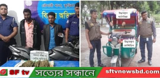 অপরদিকে রৌমারী থানা পুলিশের একটি চৌকস টিম গত ২৫ মার্চ ২০২৪ বিকাল আনুমানিক ১৫:০০ ঘটিকায় রৌমারী থানাধীন ফুলবাড়ী গ্রামে অভিযান পরিচালনা করে ১ কেজি ২০০ গ্রাম গাঁজা ও মাদক পরিবহনে ব্যবহৃত একটি মোটরসাইকেল জব্দ সহ জামালপুর জেলার দেওয়ানগঞ্জ থানাধীন উত্তর রহিমপুর এলাকার কুখ্যাত মাদক কারবারি মোঃ আঃ সালাম (৪০) ও ডিগ্রিরচর এলাকার মোঃ হজরত আলী (৪২) দ্বয়কে হাতেনাতে গ্রেফতার করে।কুড়িগ্রাম জেলা পুলিশের মিডিয়া মুখপাত্র অতিরিক্ত পুলিশ সুপার (পুলিশ সুপার পদে পদোন্নতিপ্রাপ্ত) জনাব মোঃ রুহুল আমীন বলেন, উক্ত বিষয়ে কুড়িগ্রাম ও রৌমারী থানায় মাদকদ্রব্য নিয়ন্ত্রণ আইনে পৃথক দুইটি মামলা রুজু করা হয়েছে। কুড়িগ্রাম জেলায় মাদক নির্মূলে আমাদের এই অভিযান নিয়মিতভাবে অব্যাহত থাকবে, আমরা সকলের সম্মিলিত সহযোগিতা প্রত্যাশা করি।