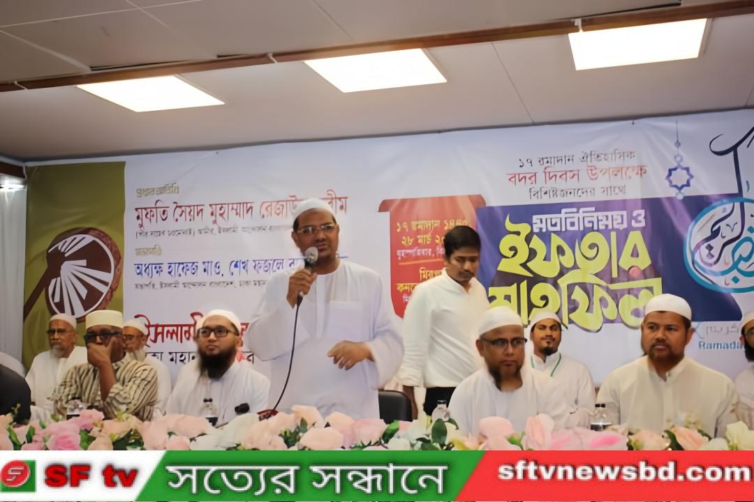 আজ ১৭ রমজান, ২৮ মার্চ ২০২৪ ইং বৃহস্পতিবার বিকাল ৫ টায় রাজধানী ঢাকার মিরপুরস্থ ‘মিরপুর কনভেনশন সেন্টার (মিরপুর—২ শপিং কমপ্লেক্স) ইসলামী আন্দোলন বাংলাদেশ ঢাকা মহানগর উত্তরের উদ্যোগে ঐতিহাসিক বদর দিবস উপলক্ষে বিশিষ্টজনদের সাথে মতবিনিময় ও ইফতার মাহফিলে, ইসলামী আন্দোলন বাংলাদেশের আমীর মুফতী সৈয়দ মুহাম্মাদ রেজাউল করীম (পীর সাহেব চরমোনাই) বলেন, দেশবিরোধী সকল আধিপত্যবাদী শক্তিকে সম্মিলিতভাবে রুখে দিতে হবে।
