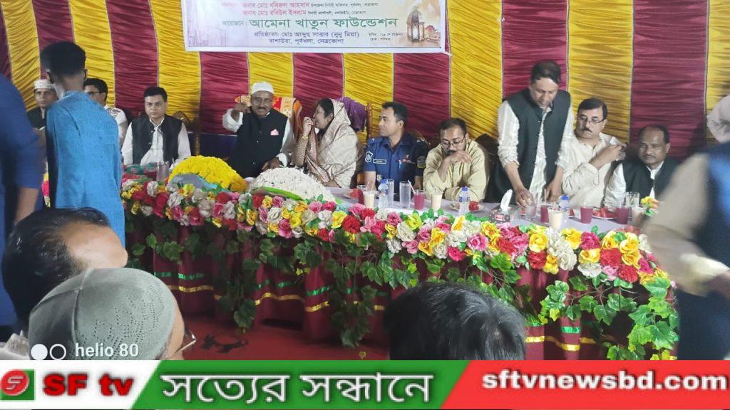 নেত্রকোনার পূর্বধলায় ধলামূলগাঁও ইউনিয়নের বাশাউরা গ্রামে আমেনা খাতুন ফাউন্ডেশনের উদ্যোগে দোয়া ও ইফতার মাহফিল অনুষ্ঠিত হয়েছে। এতে প্রধান অতিথি হিসেবে উপস্থিত ছিলেন স্থানীয় সংসদ সদস্য বীর মুক্তিযোদ্ধা আহমদ হোসেন। বিশেষ অতিথি হিসেবে উপস্থিত ছিলেন সংরক্ষিত মহিলা আসনের সংসদ সদস্য ড. নাদিয়া বিনতে আমিন, পূর্বধলা থানার ভারপ্রাপ্ত কর্মকর্তা মোহাম্মদ রাশেদুল ইসলাম, কেন্দ্রীয় ছাত্রলীগের মুক্তিযুদ্ধ ও গবেষণা বিষয়ক উপ-সম্পাদক আহনাফ হোসেন। এছাড়াও অনুষ্ঠানে স্থানীয় আওয়ামীলীগ ও অঙ্গসংগঠনের নেতৃবৃন্দ উপস্থিত ছিলেন।