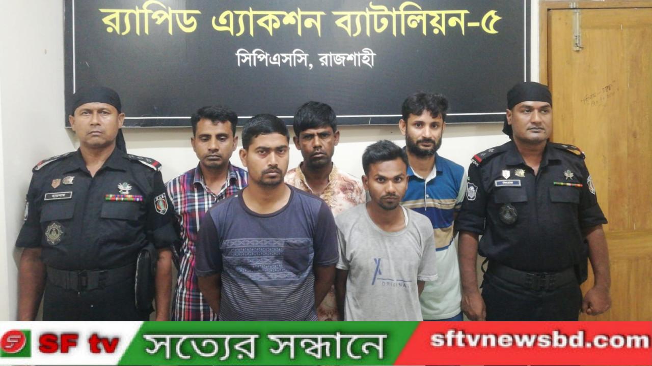 গতকাল শনিবার বিকেল সাড়ে ৪টার দিকে রাজশাাহী র্যাব-৫ সদর কোম্পানীর একটি দল বাগমারার ভবানীগঞ্জ পৌরসভা চাঁনপুর এলাকায় অভিযান চালিয়ে তাদের আটক করে।