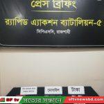 আটককৃতরা হলো, বাগমারার দানগাছী এলাকার জুয়েল রানা (৩৫), দেউলিয়া গ্রামের মুরাদ হোসেন (৩২), চাঁনপাড়ার আলী (৩৫), সোহেল রানা (৩৪), বাছড়া গ্রামের খাঁজা মঈনুদ্দিন (২৮)। এসময় তাদের কাছ থেকে বিভিন্ন যানবাহন থেকে তোলা ৩২২০ টাকা, চাঁদা আদায়ের রশিদসহ অন্যান্য সরঞ্জামাদি উদ্ধার করা হয়েছে। র্যাব জানায়, আটককৃতরা বাগমারার ভবানীগঞ্জ পৌরসভার অন্যতম চাঁদাবাজ চক্রের সদস্য। তারা দীর্ঘদিন যাবত বিভিন্ন ভাউচারের (রশিদ, টোকেন) মাধ্যমে সিএনজি, ইজিবাইক এবং লেগুনাসহ বিভিন্ন যানবাহনে চাঁদাবাজি করে আসছিল। কোন চালক তাদের চাঁদা দিতে অস্বীকৃতি জানালে তাকে ভয়ভীতি দেখানো ও মারধর এবং গাড়ী ভাংচুর করতো এসব চাঁদাবাজরা। আটককৃতদের বাগমারা থানায় সোপর্দ করে তাদের বিরুদ্ধে চাঁদাবাজি মামলা দায়ের করা রয়েছে।