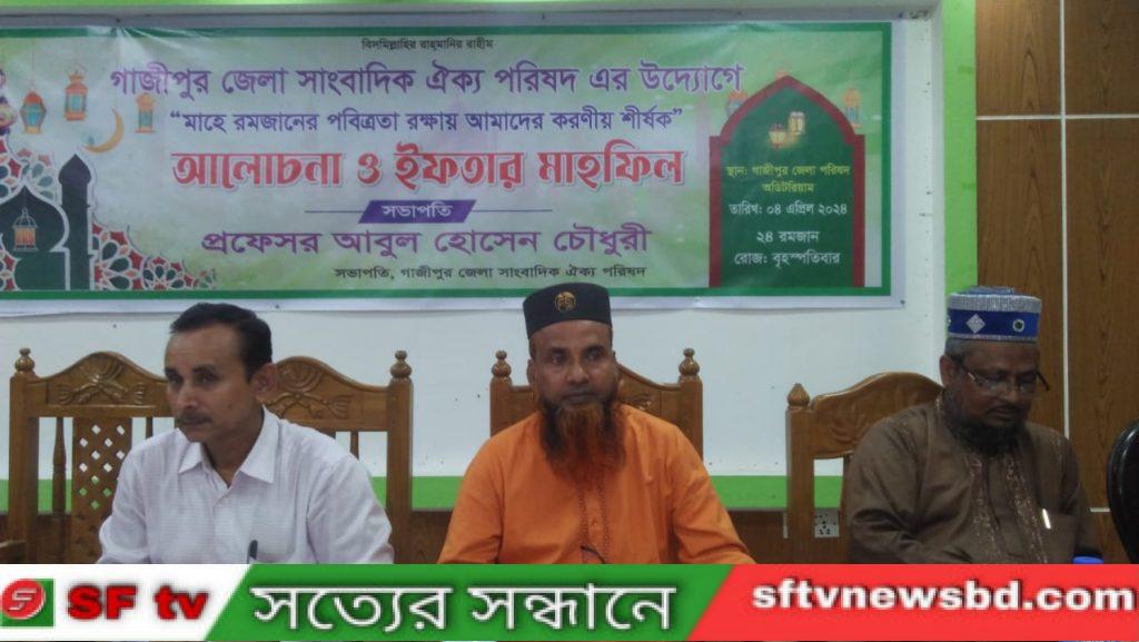 গাজীপুর জেলা সাংবাদিক ঐক্য পরিষদ এর উদ্যেগে আলোচনা ও ইফতার মাহফিল অনুষ্ঠিত হয়েছে