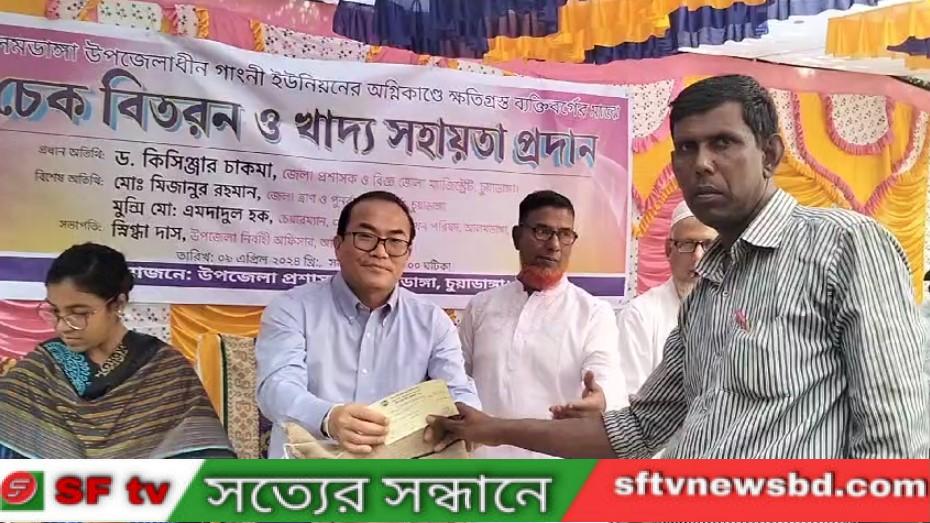 এরি ধারাবাহিকতায় ক্ষতিগ্রস্তদের মাঝে চেক বিতরণ ও খাদ্য সহায়তা প্রদান করেন।
