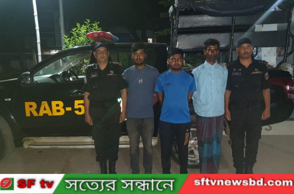 জয়পুরহাট-৫ ক্যাম্পের পাঠানো এক প্রেস বিজ্ঞপ্তিতে র্যাব জানান, গোয়েন্দা তথ্যের ভিত্তিতে, সিপিসি-৩,জয়পুরহাট র্যাব ক্যাম্পের একটি চৌকস অপারেশনাল দল শনিবার (২০ এপ্রিল) নওগাঁ জেলার ধামুইরহাট আগ্রাদিগুন বাজার এলাকায় অভিযান পরিচালনা করে পর্নোগ্রাফি ভিডিও সংরক্ষণ ও সরবরাহকারী, আওয়ালদিঘী গ্রামের রায়হান কবীর এর ছেলে মো.মাসুদ রানা (২৮), তমিজ উদ্দিন এর ছেলে মো.আতোয়ার হোসেন (৩৮) তারা একই গ্রামের বাসিন্দা, অপর একজন উত্তর কাশিপুর গ্রামের নুর ইসলাম এর ছেলে মোঃ নুরুজ্জামান (৩০) কে আটক করেন র্যাব। আটককৃত আসামীরা নওগাঁ জেলার ধামুইরহাটের আগ্রাদিগুন বাজারস্থ তাদের দোকানের নিজস্ব কম্পিউটার এর হার্ডডিস্কে অশ্লিল সিনেমা ও গানের ভিডিও ক্লিপ আপলোড ব্যবসার পাশাপাশি পর্নোগ্রাফি সংরক্ষণ করে টাকার বিনিময়ে বিভিন্ন ইলেকট্রিক ডিভাইসের মাধ্যমে স্থানীয় কিশোর ও স্কুল পডুয়া ছাত্রদের কাছে পর্নোগ্রাফি ভিডিও সরবরাহ করত। গোপন সংবাদের ভিত্তিতে র্যাব-৫, সিপিসি-৩ এর গোয়েন্দা দল অশ্লিল সিনেমা ও গানের ভিডিও ক্লিপ আপলোড ব্যবসার পাশাপাশি পর্নোগ্রাফি সরবরাহের বিষয়টি তদন্ত শুরু করে এবং তদন্তে এর সত্যতা পায়। পরবর্তীতে র্যাব-৫, সিপিসি-৩ এর একটি অভিযানিক দল শনিবার (২০ এপ্রিল) রাতে নওগাঁ জেলার ধামুইরহাট থানাধীন আগ্রাদিগুন বাজারস্থ পর্নোগ্রাফি ভিডিও সংরক্ষণ ও সরবরাহকারীদের নিজ দোকানে অভিযান পরিচালনা করে উক্ত পর্নোগ্রাফি ব্যবসায়ীদেরকে আটক করে। পরবর্তীতে আটককৃত আসামীদেরকে যথাযথ আইনগত ব্যবস্থা গ্রহণ করতে নওগাঁ জেলার ধামুইরহাট থানায় হস্তান্তর করা হয়েছে।