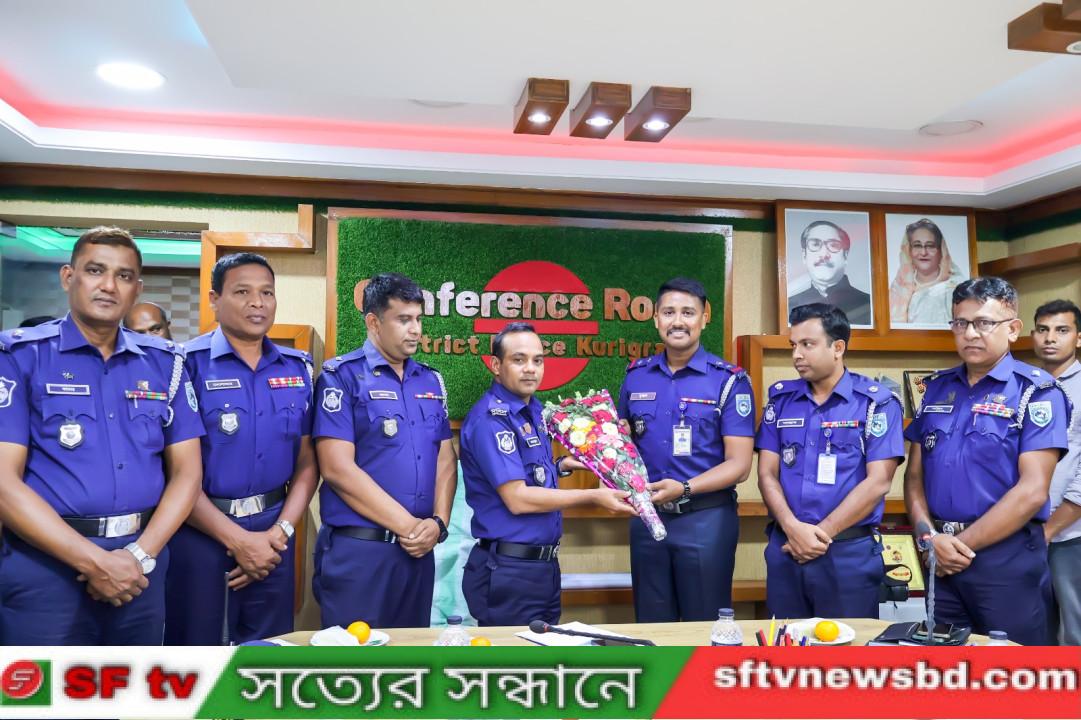 ২১ এপ্রিল ২০২৪ কুড়িগ্রাম জেলা পুলিশের ট্রাফিক বিভাগে কর্মরত পুলিশ পরিদর্শক (শহর ও যানবাহন) জনাব মোঃ সাব্বির আশিকুল আলম চৌধুরী, পিপিএম এর কুড়িগ্রাম জেলা পুলিশ হতে ঢাকা রেঞ্জ ও সার্জেন্ট জনাব মোঃ সুজন রেজা এর কুড়িগ্রাম জেলা পুলিশ হতে চট্টগ্রাম রেঞ্জে বদলি হওয়ায় কুড়িগ্রাম জেলা পুলিশের পক্ষ থেকে আজ ২১ এপ্রিল ২০২৪ বিকালে পুলিশ সুপারের কার্যালয় সম্মেলন কক্ষে বদলিজনিত বিদায় সংবর্ধনা অনুষ্ঠিত হয়।কুড়িগ্রাম জেলা পুলিশের পক্ষ থেকে বিদায়ী জেলা পুলিশের ২ জন সদ্যকে সম্মাননা স্বারক ও ফুলেল শুভেচ্ছা প্রদান করেন কুড়িগ্রাম জেলার পুলিশ সুপার জনাব আল আসাদ মোঃ মাহফুজুল ইসলাম।উক্ত বিদায় সংবর্ধনা অনুষ্ঠানে আরো উপস্থিত ছিলেন কুড়িগ্রাম জেলার অতিরিক্ত পুলিশ সুপার, প্রশাসন ও অর্থ (পুলিশ সুপার পদে পদোন্নতি প্রাপ্ত) জনাব মোঃ রুহুল আমীন, অতিরিক্ত পুলিশ সুপার (ক্রাইম অ্যান্ড অপস) জনাব মোঃ সাজ্জাদ হোসেন, কুড়িগ্রাম সার্কেলের অতিরিক্ত পুলিশ সুপার জনাব এ কে এম ওহিদুন্নবী, ডিআইও-১ জনাব মোঃ আব্দুর রাজ্জাক, কুড়িগ্রাম থানার অফিসার ইনচার্জ জনাব মোঃ মাসুদুর রহমান, টিআই (প্রশাসন) জনাব বানিউল আনাম সহ জেলা পুলিশের অন্যন্য সদস্যবৃন্দ।