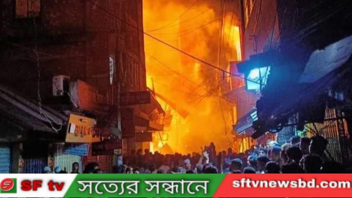 নোয়াখালী চৌমুহনী বড় মসজিদ মার্কেটে কাপড়ের দোকানে ভয়াবহ আগুন।