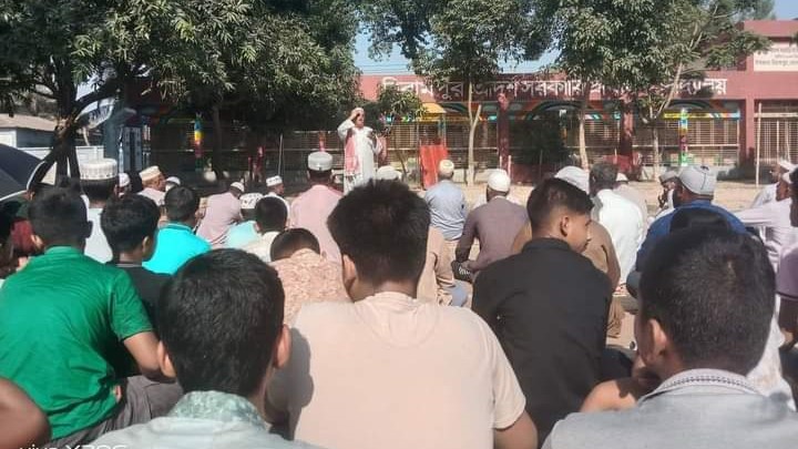 আজ দিনাজপুরের বিরামপুরে বৃষ্টির জন্য ইসতিসকার নামাজ আদায় করেছেন হাজারো মুসলিম। দেশের বিভিন্ন প্রায় অঞ্চলে প্রচন্ড পরিমাণে গরমের কারণে মুসল্লিরা একত্র হয়ে এ নামাজ বিভিন্ন স্থানে আদায় করতেছে।তাই আজ ধর্মপ্রাণ মুসলিমরা বিরামপুরেও ইসতিসকার নামাজ আদায় করে আল্লাহর কাছে কান্নাকাটি করে বৃষ্টির জন্য প্রার্থনা করে।