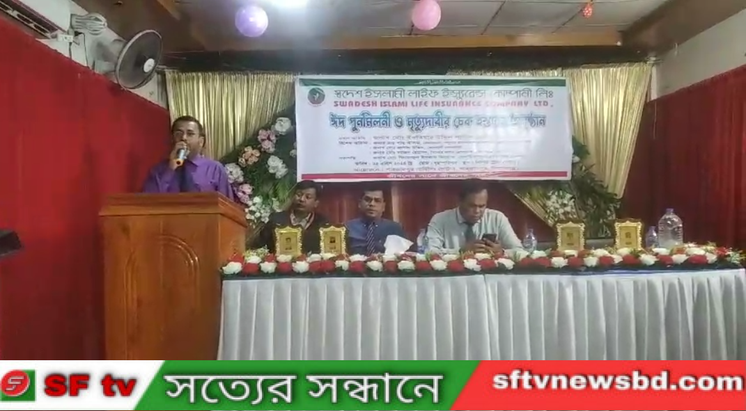 সিরাজগঞ্জ জেলার শাহজাদপুর সার্ভিসিং সেন্টার এর আয়োজনে "স্বদেশ ইসলামী লাইফ ইন্সুরেন্স কোম্পানী লিঃ এর ঈদ পুর্নমিলনী ও ম্যত্যুদাবীর চেক হস্তান্তর অনুষ্ঠান অনুষ্ঠিত হয়েছে।