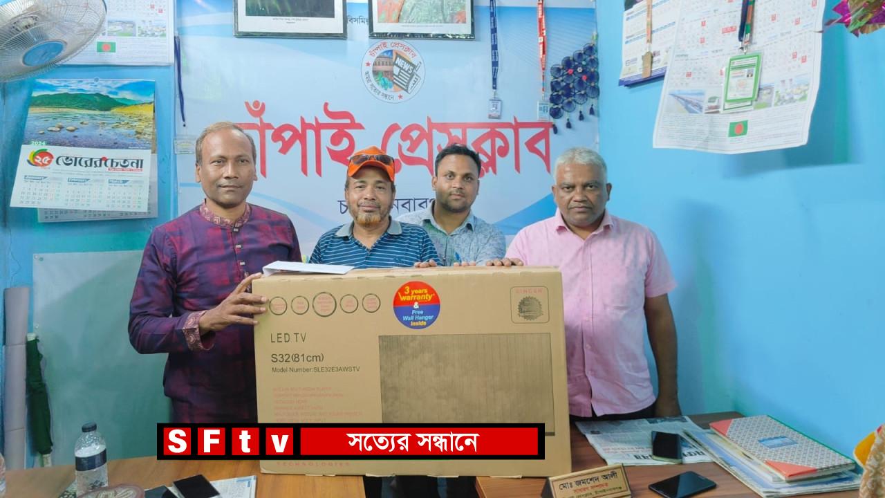 চাঁপাই প্রেসক্লাবে বিশিষ্ট ব্যবসায়ীর স্মার্ট টিভি উপহার