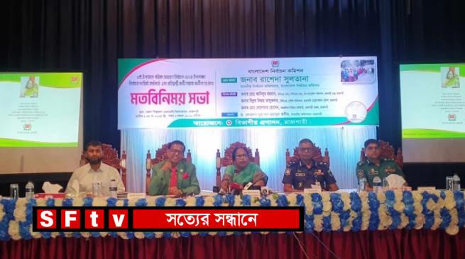 শনিবার দুপুরে রাজশাহী জেলা শিল্পকলা একাডেমি মিলনায়তনে বিভাগের চার জেলার উপজেলার নির্বাচনের প্রতিদ্বন্দ্বী প্রার্থী ও নির্বাচন সংশ্লিষ্ট কর্মকর্তাদের সঙ্গে মতবিনিময় সভায় এসব কথা বলেন নির্বাচন কমিশনার রাশেদা সুলতানা। রাজশাহী বিভাগীয় কমিশনার দেওয়ান মুহাম্মদ হুমায়ূন কবীরের সভায় সভাপতিত্ব করেন রাজশাহী রেঞ্জের ডিআইজি আনিসুর রহমান। অতিথি ছিলেন রাজশাহী মেট্রোপলিটন পুলিশের কমিশনার বিপ্লব বিজয় তালুকদার, আঞ্চলিক নির্বাচন কর্মকর্তা দেলোয়ার হোসেন। এসময় প্রশাসনের বিভিন্নস্তরের কর্মকর্তাগণ উপস্থিত ছিলেন।