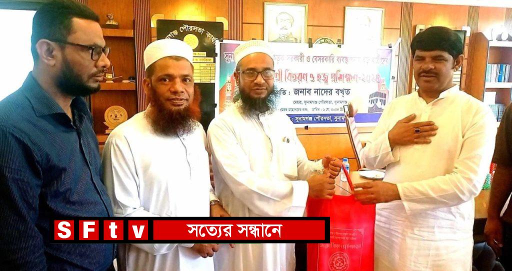 জেলা আওয়ামীলীগের সহ-সভাপতি ও পৌরসভার মেয়র নাদের বখতের সভাপতিত্বে ও পৌরসভার সমাজ উন্নয়ন কর্মকর্তা মোঃ নিজাম উদ্দিনের সঞ্চালনায় হজ্ব প্রশিক্ষণ বিষয়ে বক্তব্যে রাখেন, সুনামগঞ্জ ইসলামিক ফাউন্ডেশনের ডিডি কৃষিবিদ মোঃ মোর্শারক হুসেন, কাজির পয়েন্টের জামে মসজিদের ইমাম ও খতিব মুফতী আব্দুল হক প্রমুখ।