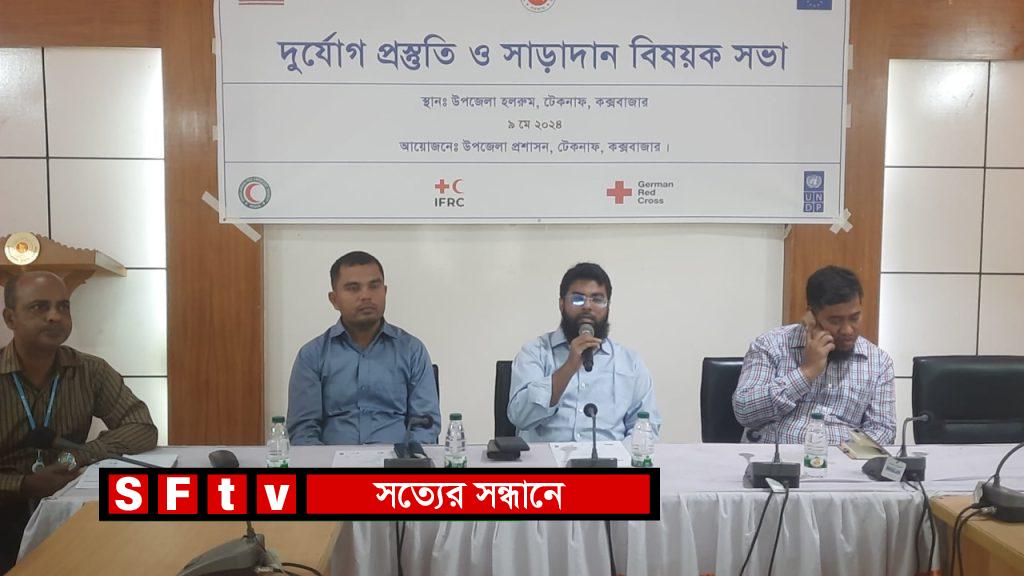 দুর্যোগ প্রস্তুতি ও সাড়াদান বিষয়ক সভা ৯ মে উপজেলা পরিষদ মিলনায়তনে অনুষ্ঠিত হয়। টেকনাফ উপজেলা প্রশাসন এর আয়োজন এবং ইউএনডিপির সহযোগিতায় অনুষ্ঠানে উপজেলা প্রকল্প বাস্তবায়ন কর্মকর্তা মোমোঃ হাবিবুর রহমানের সভাপতিত্বে অনুষ্ঠিত সভায় প্রধান ও বিশেষ অতিথি হিসাবে বক্তব্য রাখেন,টেকনাফ উপজেলা সহকারী কমিশনার (ভূমি) ও উপজেলা কৃষি অফিসার মোঃ জাকেরুল ইসলাম ও বাংলাদেশ রেড ক্রিসেন্ট সোসাইটি ডেপুটি ডাইরেক্টর আব্দুল করিম।