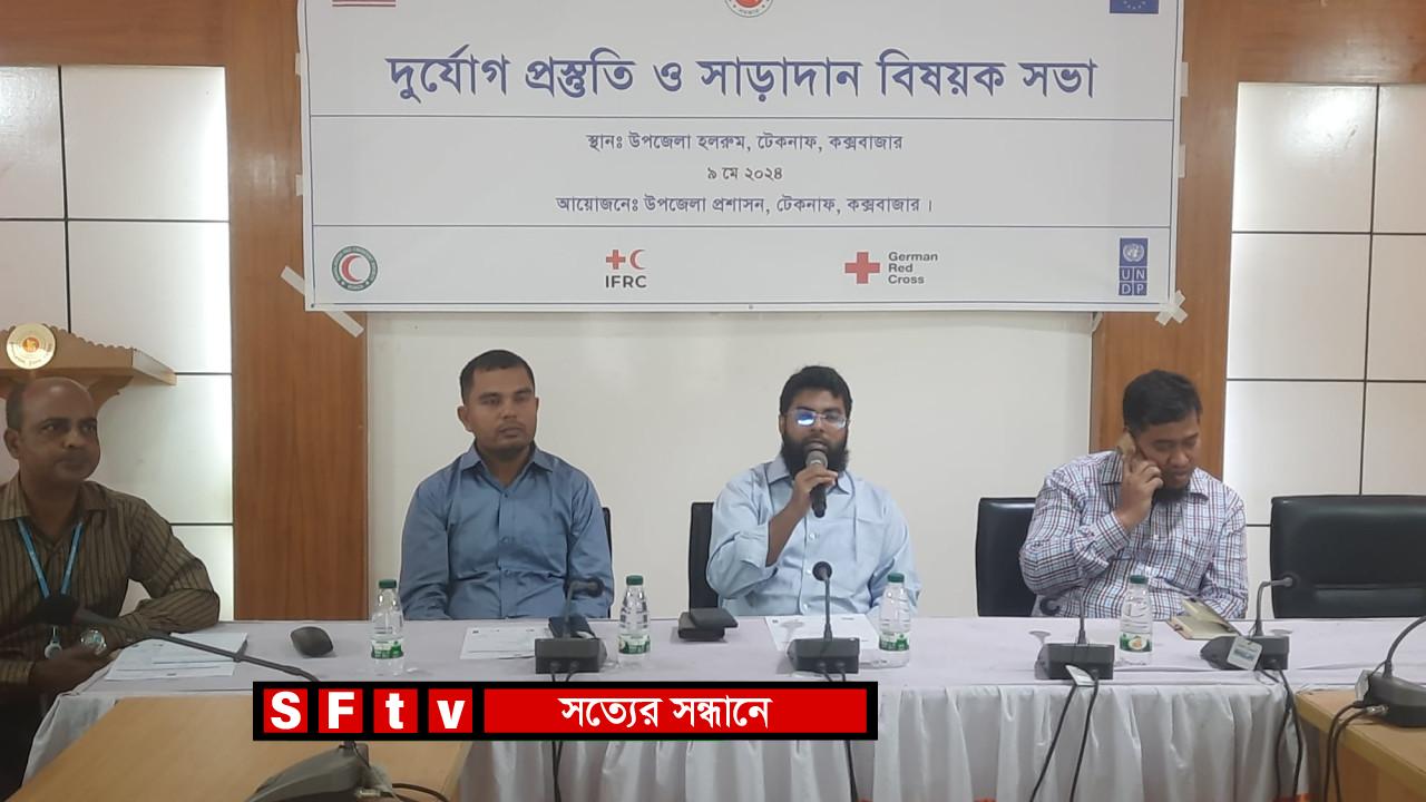 বক্তব্য রাখেন, আইএফআরসি অফিসার (ডিআরআর) মোঃ শহীজান ইসলাম।বলাদেশের রেড ক্রিসেন্ট সোসাইটি কক্সবাজার কো-অর্ডিনেটর মোঃ হারুনর রশীদ এর সঞ্চালনায় এবং দুর্যোগ ব্যবস্থাপনা প্রকল্পে ইউএনডিপির প্রতিনিধি রোনা জেসমিন আক্তার এর গৃহীত উন্নয়ন প্রকল্পের মাধ্যমে দুর্যোগ সংক্রান্ত বিভিন্ন তথ্য উপাত্ত প্রজেক্টর এর মাধ্যমে ধারণা সূচক উপস্থাপনা করা হয়। এবিষয়ে উন্মুক্ত আলোচনায় অংশ গ্রহণ করেন, টেকনাফ উপজেলা সহকারী মৎস্য অফিসার শহীদুল আলম, সাংবাদিক মোঃ আশেক উল্লাহ ফারুকী, সাংবাদিক নাছির উদ্দীন রাজ,প্রমুখ। উন্মুক্ত আলোচনায় ঐসব তথ্য উপাত্ত ভেসে উঠেছে এবং বাংলাদেশ দুর্যোগ প্রবন দেশ এবং তার মধ্যে টেকনাফ অধিক ঝুঁকিপুর্ণ উপজেলা। দুর্যোগ দুই প্রকার একটি প্রাকৃতিক এবং মানব সৃষ্ট দুর্যোগ। এ নিয়ে কাজ করছে বাংলাদেশ রেড ক্রিসেন্ট সোসাইটি। এটি সরকারের সহযোগী সংগঠন।সভাপতি সমাপনী বক্তব্যে বলেন, দুর্যোগের পূর্বে প্রস্তুতি থাকলে জান ও মালের নিরাপত্তা থাকে।