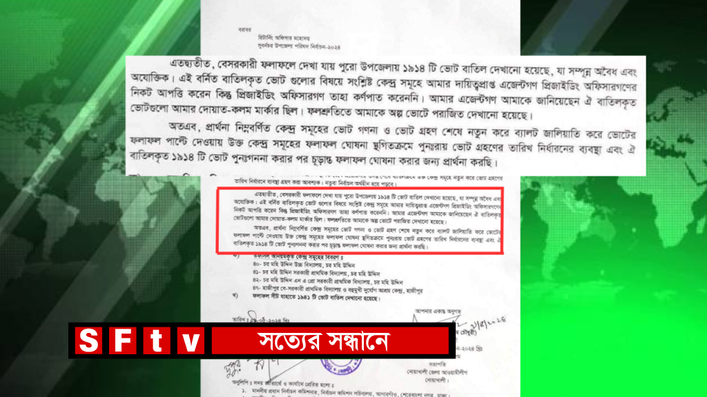 সুবর্ণচরে ৪ কেন্দ্রের ফলাফল স্থগিত এবং বাতিলকৃত ভোট পুনঃগননার দাবি করেন