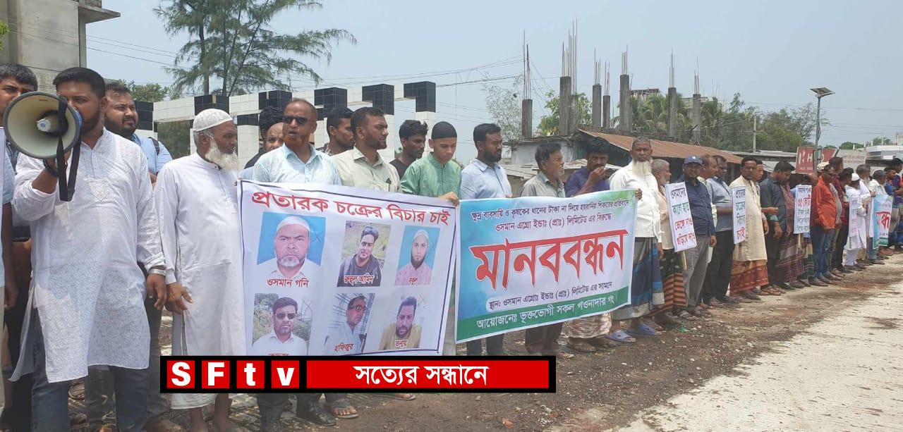 নওগাঁর মহাদেবপুরে ওসমান এগ্রো ইন্ডা:(প্রা:) লিমিটেডের বিরুদ্ধে প্রায় ৩৫ কোটি টাকা পাওনা পরিশোধ না করে বিভিন্ন হয়রানির প্রতিবাদে দাবীতে মানববন্ধন করেছে প্রান্তিক কৃষক ও ক্ষুদ্র ব্যবসায়ীরা। রোববার দুপুরে উপজেলা সদরের মডেল স্কুল মোড়ের আঞ্চলিক মহাসড়কে ঘন্টাকাল ব্যাপী এ টাকা আদায়ের দাবিতে মানববন্ধন করেন কৃষক ও ক্ষুদ্র ব্যবসায়ীরা।উক্ত মানববন্ধনে পাওনাদার প্রান্তিক কৃষক ও ব্যবসায়ীরাসহ প্রায় পাঁচ শতাধিক ভুক্তভোগী অংশগ্রহণ করেন। মানববন্ধনে বক্তারা বলেন, ওসমান এগ্রো ইন্ডাঃ (প্রাঃ) লিমিটেডের স্বত্তাধীকারী মো. ওসমান গণি গং তার ব্যবসা প্রতিষ্ঠানের জন্য প্রায় আড়াই’শ জন কৃষক ও ব্যবসায়ীদের নিকট থেকে বাকীতে ৩৫ কোটি টাকার ধান ক্রয় করে এসব টাকা পরিশোধ না করে বিভিন্ন তালবাহানা ও কালক্ষেপণ করতে থাকে। কখনো কখনো টাকা দিতে অপারগতা প্রকাশ করে বিভিন্ন ভয়-ভীতি ও মারপিটের হুমকী প্রদান করে। তারা আরো বলেন, তিনি প্রতিষ্ঠান থেকে মূলধন অন্যত্র সরিয়ে নিয়ে পরিবারের তথা, স্ত্রী, ছেলে, মেয়ে, জামাইসহ অন্যান্য আত্মীয়-স্বজনদের নামে রাজধানী ঢাকায় ১৫ থেকে ২০ টি বহুতল ভবন নির্মাণসহ বিভিন্ন জায়গায় সম্পদের পাহাড় গড়ে তুলে নিজেকে বাকী পরিশোধে অপারগ বলে বিভিন্ন আর্থিক প্রতিষ্ঠান ও তাদের সাথে প্রতারণা করছে। এসব পাওনা টাকা ফেরত পাওয়ার জন্য জেলা প্রসাশকসহ বিভিন্ন দপ্তরে লিখিত অভিযোগ করেছেন বলেও জানান তারা। মানববন্ধনে বক্তব্য রাখেন, কালাই জয়পুরহাটের সমশিরা বাজারের ব্যবসায়ী মেসার্স ইসলাম এন্ড ব্রাদার্সের স্বত্তাধীকারী মো. আনোয়ার হোসেন, ধামইরহাট উপজেলার ফতেপুর বাজারের ব্যবসায়ী মেসার্স বেলাল ট্রেডার্সের স্বত্তাধীকারী মো. বেলাল হোসেন, খিরশিন গ্রামের কৃষক নূরুজামান, ব্যবসায়ী আল ইমরান, দিনাজপুরের ব্যবসায়ী আব্দুল্লাহ আল মামুন, ময়েন উদ্দীন প্রমূখ। মানববন্ধনে ওসমান এগ্রো ইন্ডাঃ (প্রাঃ) লিমিটেডের নিকট থেকে যাবতীয় পাওনা অচিরেই পরিশোধের দাবী জানান তারা।