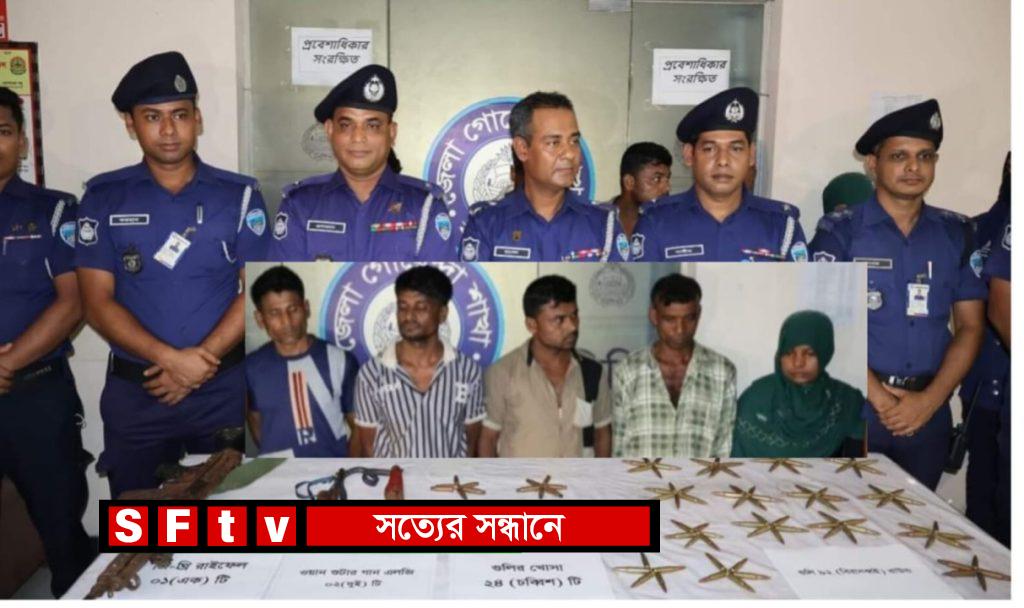 গ্রেপ্তারকৃতরা হলেন উখিয়ার মাদারবুনিয়া এলাকার মো. ছৈয়দের ছেলে মোস্তাক আহমদ (৪৩), মহেশখালীর মাঝের ডেইল এলাকার আনজু মিয়ার ছেলে রবিউল আলম (৩৪), মাদারবুনিয়া এলাকার মৃত নুর নবীর ছেলে কাশেম প্রকাশ মনিয়া (৩৫), মোস্তাক আহমদের মেয়ে লতিফা আক্তার (২৪) এবং মহেশখালীর নতুন বাজার এলাকার মৃত আবুল হাশেমের ছেলে বেল্লাল হোসেন (৪০)। বৃহস্পতিবার (১৬ মে) বিকালে কক্সবাজার পুলিশ সুপারের কার্যালয়ে আয়োজিত এক সংবাদ সম্মেলনে পুলিশ সুপার মো. মাহাফুজুল ইসলাম জানান, মিয়ানমার থেকে বিদেশি আগ্নেয়াস্ত্র এবং গুলি বাংলাদেশে এনে অপরাধী চক্রের কাছে হস্তান্তর করার গোপন সংবাদের ভিত্তিতে মাদারবুনিয়া এলাকায় গহিন পাহাড়ে দুর্ধর্ষ ডাকাত মোস্তাকের বাড়িতে অভিযান চালিয়ে চারজনকে গ্রেপ্তার করা হয়। এ সময় তাদের কাছ থেকে ২টি ওয়ান শুটার গান (এলজি), ৭৭ রাউন্ড গুলি এবং ২৪টি গুলির খোসা উদ্ধার এবং টেকনাফ এলাকা থেকে বেলাল নামে একজনকে গ্রেপ্তার করা হয়। তার দেওয়া তথ্যের ভিত্তিতে টেকনাফের শাপলাপুর এলাকায় সমুদ্র তীরবর্তী ঝাউবাগানের বালুর নিচে রাখা ১টি জি থ্রি রাইফেল, ১টি ম্যাগাজিন ও ১৫ রাউন্ড গুলি উদ্ধার করা হয়। ডাকাত মোস্তাক আহমদ একাধিক ডাকাতি, অস্ত্র, মাদক মামলার আসামি এবং তার বিরুদ্ধে ৪টি গ্রেপ্তারি পরোয়ানা রয়েছে। অস্ত্র ব্যবসায়ী রবি আলমের বিরুদ্ধে ৪টি মামলা রয়েছে। এ ব্যাপারে উখিয়া ও টেকনাফ থানায় অস্ত্র আইনে ২টি মামলা হয়েছে। আসামিদের ৫ দিনের রিমান্ডের আবেদন করে আদালতে পাঠানো হয়েছে। চক্রের বাকি আসামিদের গ্রেপ্তারে অভিযান চলছে।