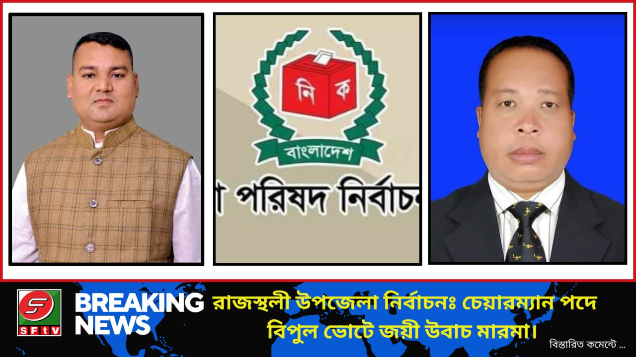 ২১ মে ২০২৪ ইং তারিখ রোজ মঙ্গলবার ষষ্ঠ উপজেলা পরিষদ নির্বাচন দ্বিতীয় ধাপে রাঙ্গামাটি রাজস্থলী উপজেলায় উৎসবমুখর পরিবেশে ভোট গ্রহণ সম্পন্ন হয়েছে। মঙ্গলবার (২১ মে) ১৪টি ভোট কেন্দ্রে কোন অপ্রীতিকর ঘটনা ছাড়াই ভোট গ্রহণ সম্পন্ন হয়েছে। সকাল থেকে কেন্দ্রে দুপুর পর্যন্ত ভোটারের ভিড় দেখা গেলেও দুপুরের পর কেন্দ্র ছিল অনেকটা ফাঁকা ছিল। কিন্তু নারী ভোটার ছিল দেখারমত। সন্ধ্যা ৭ টায় বেসরকারি ফলাফলে উপজেলার ১৪ টি কেন্দ্রে চেয়ারম্যান নির্বাচিত হয়েছেন উবাচ মারমা, (আনারস) প্রতীক নিয়ে পেয়েছেন ৭০৭৫ ভোট, তার নিকটত প্রতিদ্বন্ধি রিয়াজ উদ্দিন রানা, (দোয়াত কলম) প্রতীকে পেয়েছেন ২০১৮ভোট। উক্ত ভোটে উবাচ মারমা,(আনারস) প্রতীকে ৫০৪০ ভোটের ব্যাবধানে জয় লাভ করেন। এবং বিনা প্রতিদ্বন্দ্বীতাই ভাইস চ্যায়ারম্যান হোন হারাধন কর্মকার। সন্ধ্যার ৭ টার দিকে ফলাফল ঘোষণা করেন উপজেলা নির্বাহী অফিসার ও সহকারি রিটার্নিং কর্মকর্তা সজীব কান্তি রুদ্র। উক্ত ভোটের শেষে উপজেলা নির্বাহী অফিসার ও সহকারি রিটার্নিং সর্মকর্তা সজীব রুদ্র জানান, প্রতিটি ইউনিয়ন এ একজন নির্বাহী ম্যাজিষ্ট্রেট এবং প্রতিটি কেন্দ্রে পুলিশ আনসার মোতায়েন এর পাশাপাশি স্ট্রাইকিং ফোর্স হিসাবে বিজিবি টহল দিচ্ছেন। এবং সুষ্ঠ পরিবেশে রাজস্থলী উপজেলার নির্বাচন সমাপ্তি ঘটে।