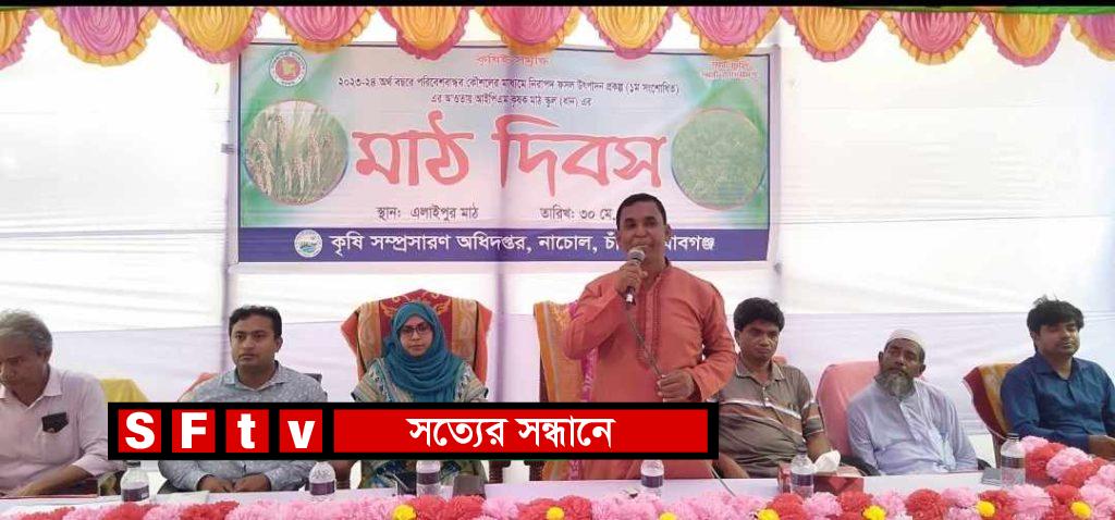 চাঁপাইনবাবগঞ্জের নাচোলে ২০২৩-২৪ ইং অর্থ বছরে পরিবেশ বান্ধব কৌশলের মাধ্যমে নিরাপদ ফসল উৎপাদন প্রকল্পের আওতায় বাস্তবায়িত কৃষক মাঠ স্কুলের মাঠ দিবস ও পুরস্কার বিতরণ অনুষ্ঠিত হয়েছে। গতকাল বৃহস্পতিবার বিকেলে নাচোল কৃষি সম্প্রসারণ অধিদপ্তরের আয়োজনে কসবা ইউনিয়নের এলাইপুর মাদ্রাসা মাঠে এ মাঠ দিবস অনুষ্ঠিত হয়। এসময় প্রশিক্ষণ প্রাপ্ত ২৫ জন কৃষক-কৃষাণীকে দুই হাজার আট’শ টাকা ও সার্টিফিকেট প্রদান করা হয়। এসময় নাচোল উপজেলা নির্বাহী অফিসার নীলুফা সরকারের সভাপতিত্বে, প্রধান অতিথির বক্তব্য রাখেন, তৃতীয় বারের সফল উপজেলা চেয়ারম্যান আব্দুল কাদের। বিশেষ অতিথির বক্তব্য রাখেন, উপজেলা কৃষি অফিসার সালেহ আকরাম, কসবা ইউনিয়নের চেয়ারম্যান জাকারিয়া আল-মেহরাব, বাইলকাপাড়া বদ্ধায়চন্ডীপুর আলিম মাদ্রাসার অধ্যক্ষ মাওলানা সোলাইমান। অনুষ্ঠান সঞ্চালনা করেন উপ-সহকারী উদ্ভিদ সংরক্ষণ অফিসার আব্দুর নুর, উপসহকারী কৃষি কর্মকর্তা রাকিবুল ইসলাম ও আমিনুল ইসলামসহ স্থানীয় গণ্যমান্য ব্যক্তিবর্গ ও ২৫ জন কৃষক- কৃষাণী প্রশিক্ষনার্থীসহ শতাধিক কৃষক-কৃষাণী উপস্থিত ছিলেন।