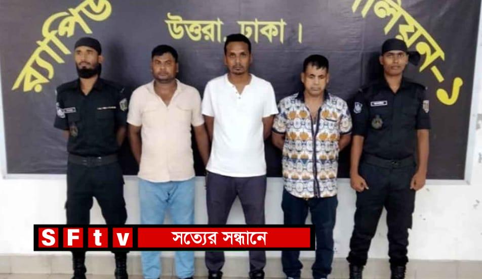 গ্রেফতার ব্যক্তিরা হলেন, দিনাজপুরের মোখলেছপুর গ্রামের নজরুল ইসলামের ছেলে মো. ফারুক হোসেন(৫৫), সিরাজগঞ্জের সরাতৈল গ্রামের আছের আলীর ছেলে আলাউদ্দিন (৪৪) ও নড়াইলের চাপুলিয়া গ্রামের লিয়াকত আলীর ছেলে রুবেল হোসেন(৩৪)।