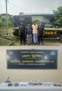 গ্রেফতারকৃত আসামীরা এলাকার চিহ্নিত মাদক ব্যবসায়ী। সীমান্তবর্তী এলাকা থেকে মাদক সংগ্রহ করে চাঁপাইনবাবগঞ্জসহ বিভিন্ন এলাকায় খুচরা এবং পাইকারী হিসেবে সরবরাহ করতো। গ্রেফতারকৃতদের বাস সীমান্ত নিকটবর্তী হওয়ায় অতি সহজেই মাদক সংগ্রহ করে নিজেদের সংরক্ষণে রেখে দিত। পরবর্তীতে সংগ্রহকৃত মাদক বিভিন্ন এলাকার মাদক ব্যবসায়ীদের নিকট খুচরা এবং পাইকারী দরে বিক্রি করত। র্যাবের নিকট এরূপ গোয়েন্দা তথ্য আসে যে, উক্ত মাদক ব্যবসায়ীরা মাদক সংগ্রহ করে সরবরাহের জন্য তাদের নিজের বসত বাড়ীতে সংরক্ষন করে রেখেছে। এমন তথ্যের ভিত্তিতে র্যাবের আভিযানিক দল পরিকল্পনা মোতাবেক উক্ত আসামীদের বসত বাড়ীতে অভিযান পরিচালনা করে স্থানীয় নিরপেক্ষ সাক্ষীদের উপস্থিতিতে তাদের বাড়ী তল্লাশী করে উল্লেখিত আলামত সহ তাদেরকে গ্রেফতার করে। ০১ জুন ২০২৪ ইং তারিখ ০৫:৩০ ঘটিকায় চাঁপাইনবাবগঞ্জ জেলার সদর থানাধীন চরবাগডাঙ্গা ইউনিয়নের শুকনাপাড়া (কাইয়ম হাজীর টোলা) গ্রামস্থ এলাকায় সিপিসি-১, চাঁপাইনবাবগঞ্জ এবং সিপিএসসি কোম্পানী র্যাব-৫, রাজশাহীর আভিযানিক দল সমন্বিত অভিযান পরিচালনা করে মাদক ব্যবসায়ী ১। মোঃ সফিকুল ইসলাম (২৯), ২। মোঃ জুয়েল রানা (২৬) উভয় পিতা-মৃত জমসেদ আলী, মাতা-মোছাঃ আছিয়া বেগম, সাং-শুকনাপাড়া (কাইয়ম হাজীর টোলা), ইউপি-চরবাগডাঙ্গা, থানা-চাঁপাইনবাবগঞ্জ সদর, জেলা-চাঁপাইনবাবগঞ্জদ্বয়কে হেরোইন-২ কেজি ৫৫০ গ্রাম, ইয়াবা-২৮৫ পিচ এবং নগদ টাকা-৫,৪৫,২১০/-(পাঁচ লক্ষ পঁয়তাল্লিশ হাজার দুইশত দশ) টাকা সহ গ্রেফতার করে। উপরোক্ত ঘটনায় চাঁপাইনবাবগঞ্জ জেলার সদর থানায় একটি নিয়মিত মামলা রুজু করা হয়েছে।