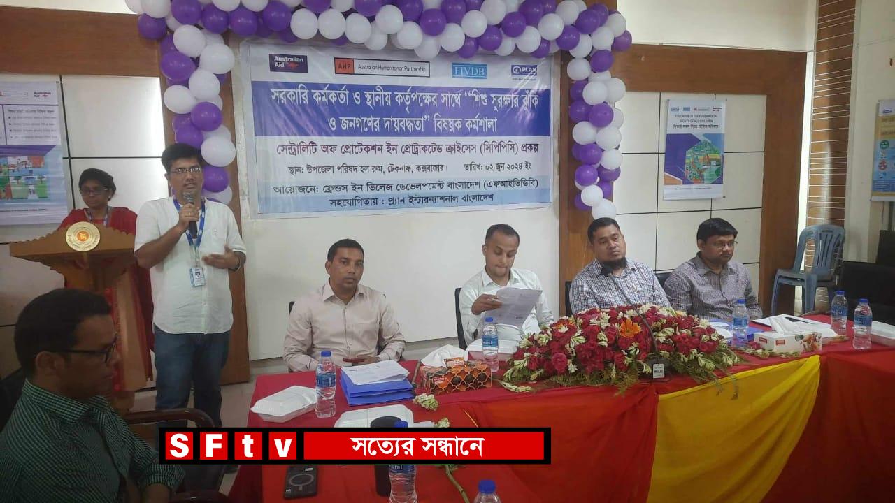 সরকারি কর্মকর্তা ও স্থানীয় কর্তৃপক্ষের সাথে "শিশু সুরক্ষার ঝুঁকি ও জনগণের দায়বদ্ধতা"বিষয়ক কর্মশালা ২ জুন রোববার সকাল ১১টায় (সেন্টারলিটি অফ প্রোটেকশন ইন প্রোটরাকটেড ক্রাইসেস ( সিপিপি সি) প্রকল্প) টেকনাফ উপজেলা পরিষদ মিলনায়তনে অনুষ্ঠিত হয়। ফ্রেন্ডস ইন ভিলেজ ডেভেলপমেন্ট বাংলাদেশ (এফআইভিডি)কর্তৃক আয়োজিত এবং প্লান ইন্টারন্যাশনাল এর সহযোগিতায় টেকনিক্যাল কো-অর্ডিনেটর এডুকেশন (এফআইভিডি) টিমমা জেস্মার সঞ্চালনায় কর্মশালায় টেকনাফ উপজেলা কৃষি অফিসার মোঃ জাকেরুল ইসলামের সভাপতিত্বে অনুষ্ঠিত সভায় উদ্বোধনী বক্তব্যের মধ্য দিয়ে কর্মশালায় প্রধান অতিথি উপজেলা নির্বাহী অফিসার মোঃ আদনান চৌধুরী বক্তব্যে বলেন,অনুষ্ঠানে শিশুর অভিভাবক ও জনপ্রতিনিধিদের উপস্থিত থাকা উচিত। শিশুরা হচ্ছে আগামী দিনের জাতির ভবিষ্যত।তাদের জীবন মানোন্নয়ন এবং সুরক্ষা ও অধিকার বিষয়ে গুরুত্বপূর্ণ আলোচনা করে তিনিআআরও বলেন,উপজেলা পরিষদ প্রাঙ্গণে শিশু সুরক্ষা মাল্টিপারপাস দর্শনীয় প্রকল্প হাতে নিলেএর থেকে শিশুরা সবক হাসিল করতে পারবে। বিশেষ অতিথি টেকনাফ মডেল থানার অফিসার ইনচার্জ ও'সি মোঃ উসমান গনি বলেন,রোহিঙ্গা,মানব পাচার ও মাদক এ তিনটি অপকর্মের প্রতি উৎসাহিত ও জড়িত ধন্যবাদ হয়ে শিশু সুরক্ষা কর্মশালা লক্ষ্য ও উদ্দেশ্যে এবং গৃহীত উন্নয়ন প্রকল্প শিশু সুরক্ষা ও অধিকারের বিভিন্ন তথ্য উপাত্ত সংক্রান্ত বিষয়ে প্রজেক্টরের মাধ্যমে উপস্থাপনা করেন,সিবিসিপি এস্পেশালিস্ট জনার্দন কর্মকার। মতামত মূলক আলোচনা করেন,টেকনাফ প্রেসক্লাবের সহ সভাপতি ও দৈনিক আজকের বসুন্ধরা পত্রিকার কক্সবাজার বিশেষ প্রতিনিধি মোঃআশেক উল্লাহ ফারুকী, ইউপি সদস্যা মুবিনা খাতুন। সমাপনী অনুষ্ঠানে বক্তব্য রেখে কর্মশালাটি সমাপ্তি ঘোষনা করেন,এফআইভিডি জেলা প্রোগ্রাম কো-অর্ডিনেটর মহি উদ্দীন সরকার।উপস্থিত ছিলেন,উপজেলা সরকারি কয়েকটি দপ্তরের অফিসার, জনপ্রতিনিধি ও স্থানীয় সুশীল সমাজ।