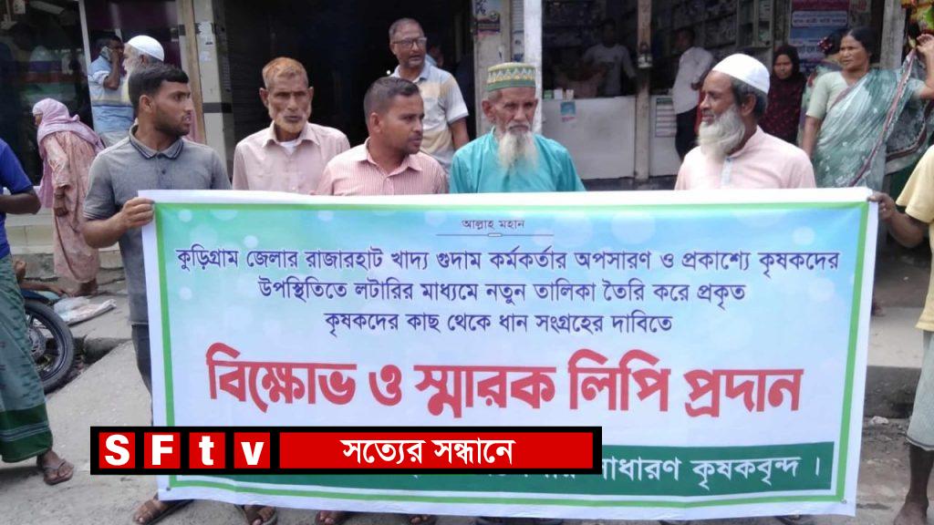 কুড়িগ্রামের রাজারহাটে বৃহস্পতিবার ৬ জুন দুপুর ২ঃ১৫ ঘটিকায় উপজেলার সোনালী ব্যাংক চত্ত্বরের সামনে রাজারহাট সাধারণ কৃষকের ব্যানারে মানববন্ধন করেন ৭/৮জনের একটি কৃষকের দল। মানববন্ধনে উপস্থিত বিক্ষোভকারী রাজারহাট উপজেলার প্রান্তিক কৃষকদের লটারীতে নাম না ওঠায় তারা এই বিক্ষোভ করেন। মানববন্ধনের ব্যানারে ওসি এলএসডির বিরুদ্ধে বিক্ষোভ ও অপসারণের দাবী করলেও উপস্থিত কৃষকেরা বলেন লটারীর কথা। মানব বন্ধনে অংশ নেওয়া চাকিরপশার ইউনিয়নের সাইফুল ইসলাম বলেন ৫০০ শতাংশ জমিতে ধান চাষ করেও রাজারহাট উপজেলা খাদ্য গোডাউনে সরকারী দরে ধান বিক্রি করতে পারিনি।এছাড়াও উপস্থিত বিক্ষোভকারী কৃষকরা তাদের নাম লটারীতে না উঠায় ক্ষোভ প্রকাশ করে ওসি এলএসডির বিরুদ্ধে তার অপসারণ দাবী করেন।রাজারহাট উপজেলার খাদ্য কর্মকর্তা শরিফ আহমেদ কে তার বিরুদ্ধে করা মানব বন্ধনের বিষয়ে জানতে চাইলে তিনি বলেন আমার বিরুদ্ধে করা মানববন্ধন উদ্দ্যেশ প্রণীদিত।তালিকা প্রস্তুত করেন কৃষি বিভাগ এবং সরকারীভাবে ধানক্রয় কমিটির সভাপতি ইউএনও মহোদয়ের উপস্থিতিতে লটারী করা হয়।গত ১৩/৫/২০২৪ ইং তারিখে রাজারহাট উপজেলার নির্বাহী অফিসার খাদিজা বেগম মহোদয়ের উপস্থিতিতে লটারী করে ৪১৩ জন প্রান্তিক কৃষকদের নির্বাচিত করা হয় পরে তারা সরকারীভাবে ধান বিক্রি করছেন।এখানে আমার কোন সংশ্লিষ্টতা নেই।তালিকা প্রস্তুত ও যাচাই বাছাইয়ের বিষয়ে রাজারহাট উপজেলা কৃষি কর্মকর্তা সাইফুন্নাহার সাথী বলেন প্রাথমিকভাবে তালিকা প্রস্তুত ও যাচাই বাছাইয়ের কাজ আমরা করে থাকি এখানে ওসি এল এস ডির কোন এখতিয়ার নেই।এবিষয়ে রাজারহাট উপজেলা নির্বাহী অফিসার খাদিজা বেগম বলেন সরকারীভাবে ধানক্রয় প্রক্রিয়া সম্পুর্নভাবে ডিজিটাল পদ্ধতিতে করা হয়,এখানে অনিয়ম করার কোন সুযোগ নেই।